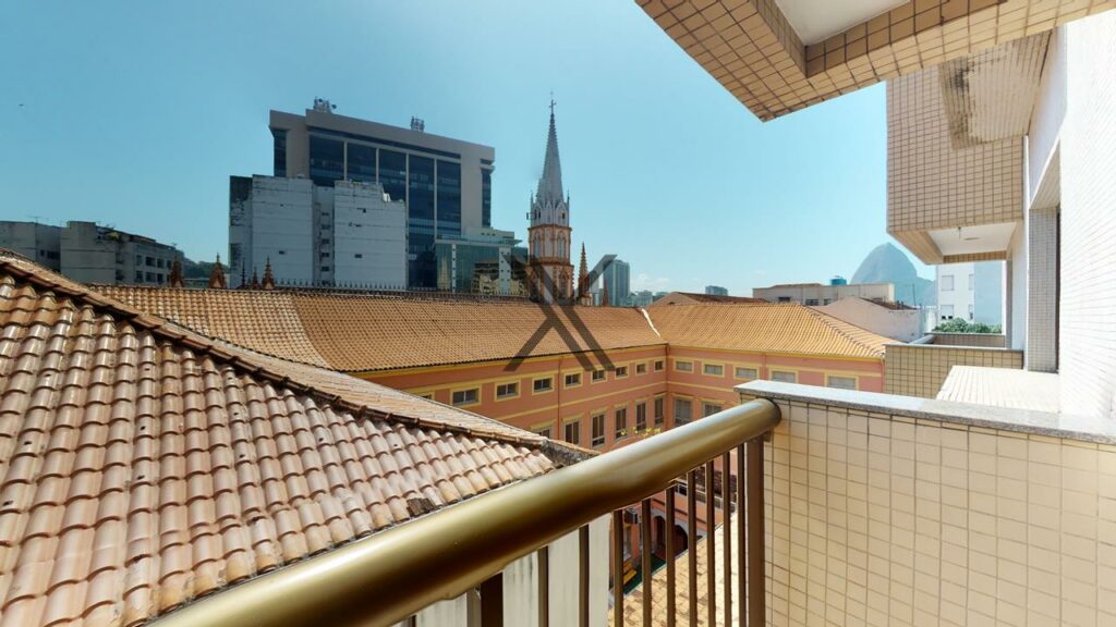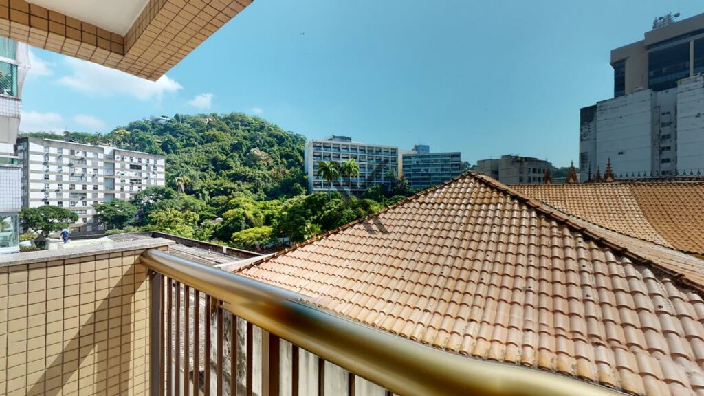 Na área social, há uma sala em dois ambientes, com um belo piso em madeira, ótima iluminação natural e com acesso à varanda com vista para o Pão de Açúcar.