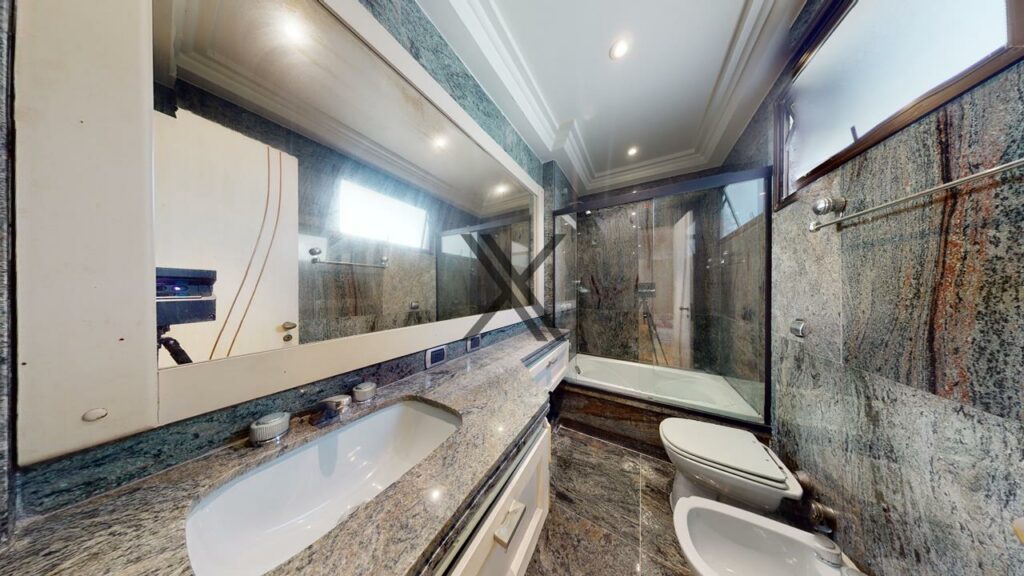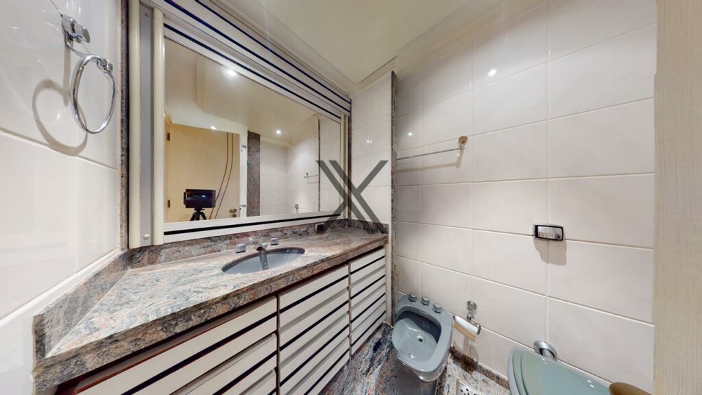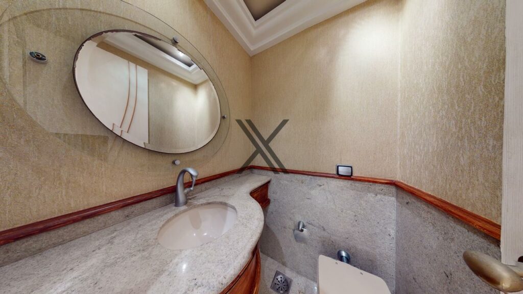 O imóvel possui um lindo hall de entrada com acesso à ampla sala de estar, que é composta por sala de jantar e de TV, com vista livre e agradável para a região. O apartamento tem um belo piso em mármore na área social, recebe uma excelente iluminação natural e possui uma bela varanda com fechamento em vidro. O ambiente tem ainda um amplo lavabo para apoio.