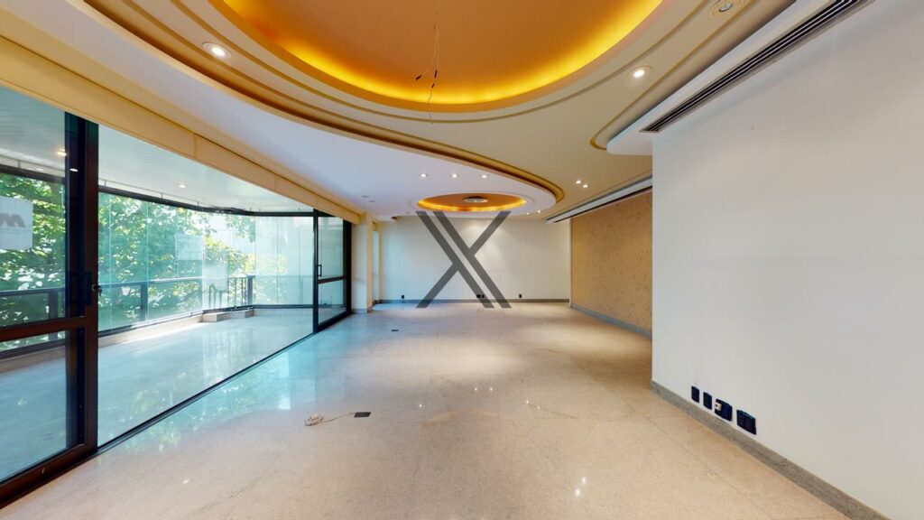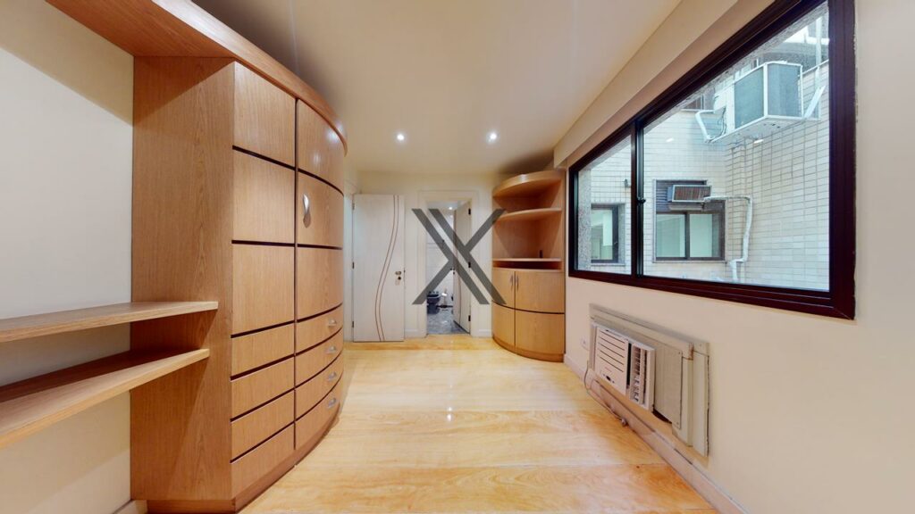 Apartamento de 220 m², silencioso, na quadra da Praia do Leblon. Situado em um ponto nobre e estratégico e em um prédio com apenas uma unidade por andar, o imóvel é rico em detalhes e oferece amplas possibilidades de customização do seu interior.
