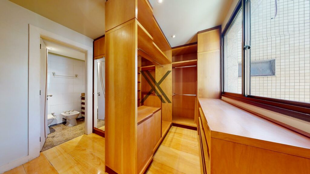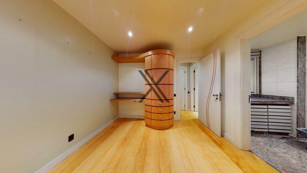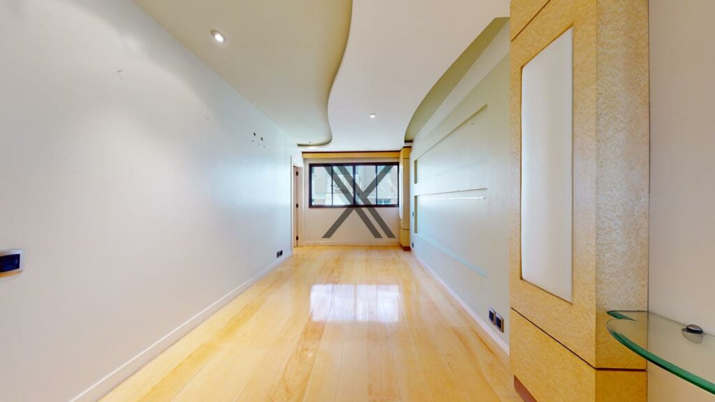 No acesso à parte privativa, o corredor e as portas em madeira fazem a separação de ambientes, trazendo versatilidade e privacidade ao dia a dia dos moradores. A área privativa é composta por 3 quartos (3 suítes). Todos os quartos são muito bem arejados e possuem grandes janelas. Além disso, a suíte master é um show à parte, pois possui dois banheiros e um grande closet. Toda a área íntima ainda dispõe de um belo piso em madeira.