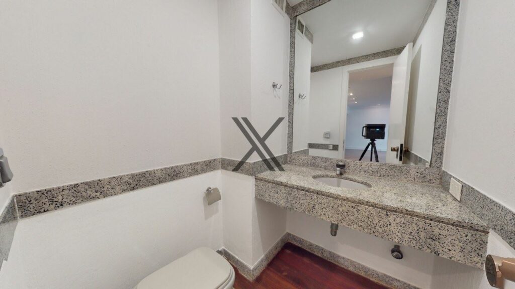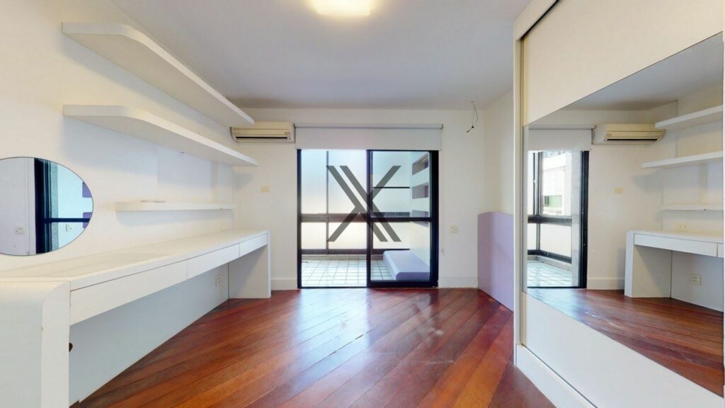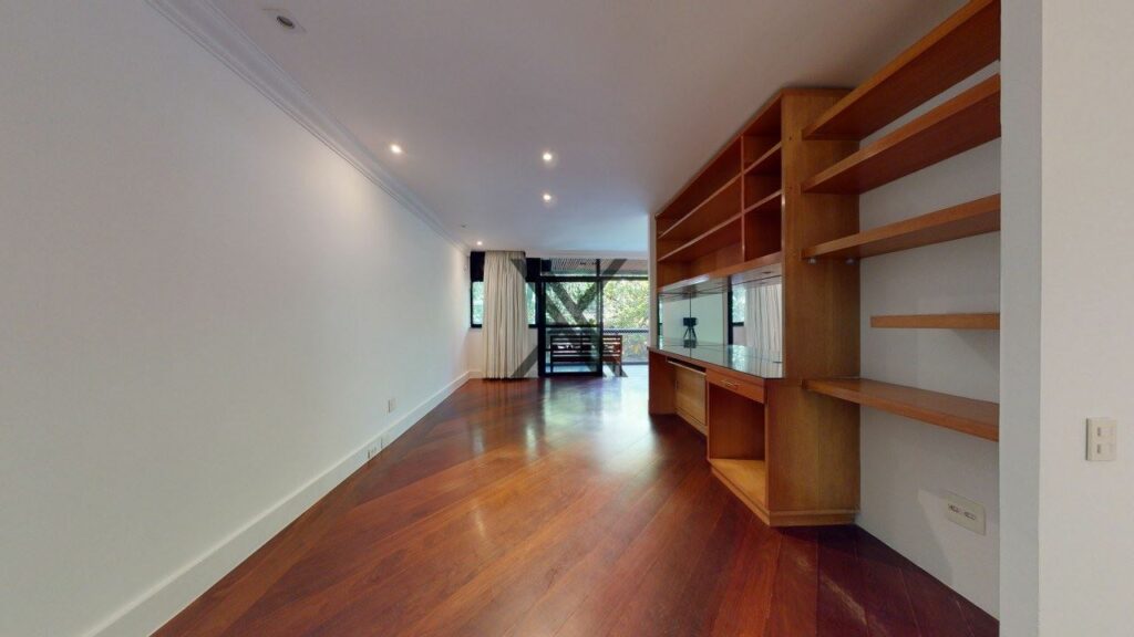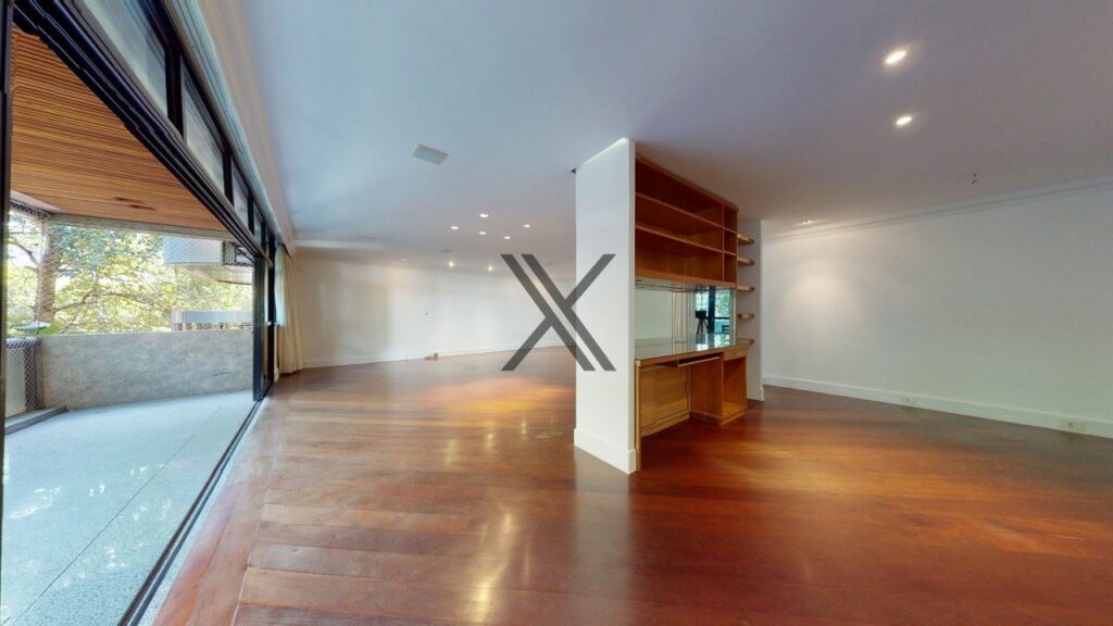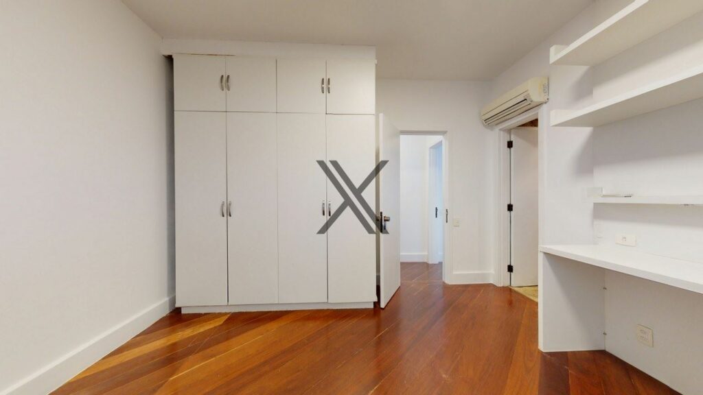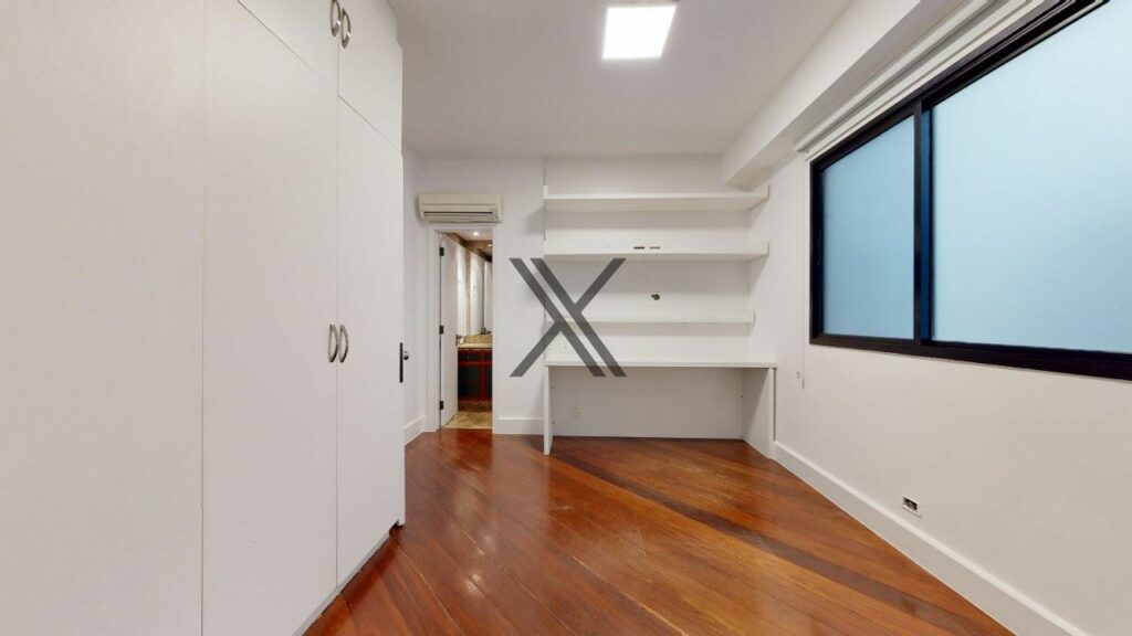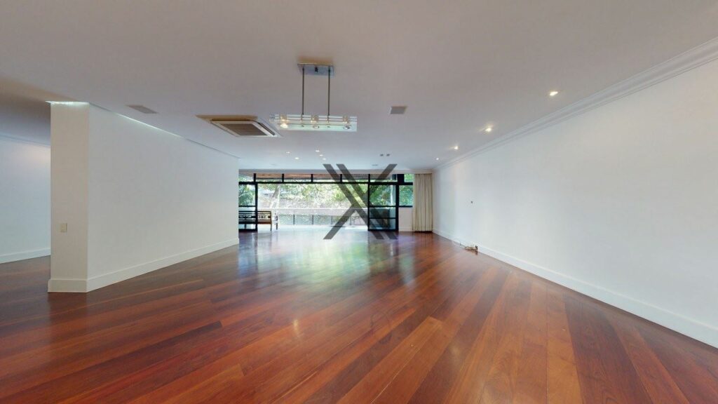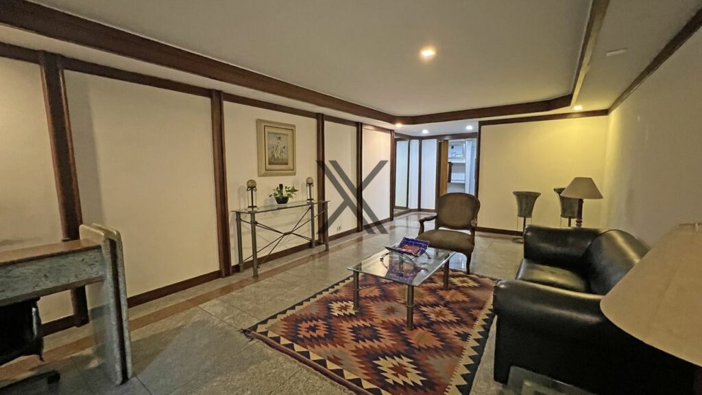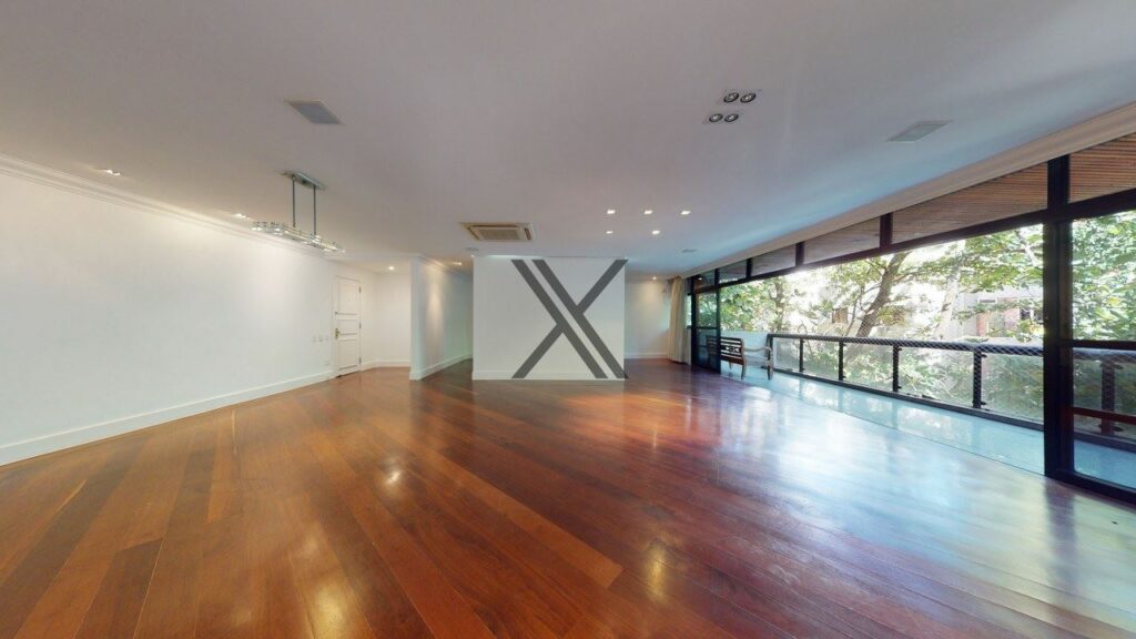 Apartamento linear de 272 m², silencioso e em rua excelente, no Leblon. O prédio possui somente uma unidade por andar, tendo por perto o comércio e os serviços essenciais do bairro, como o metrô, os estabelecimentos da Rua Dias Ferreira e o Shopping Leblon.