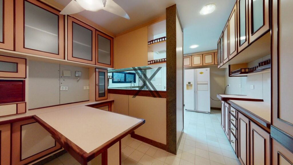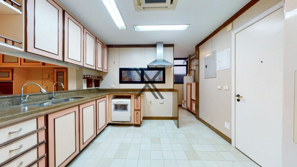 A cozinha é arejada e conta com um amplo espaço para a colocação de armários planejados. Ela também possui uma excelente área de serviço com dependência, banheiro de serviço e entrada de serviço, que oferecem um espaço funcional para a comodidade dos futuros moradores.