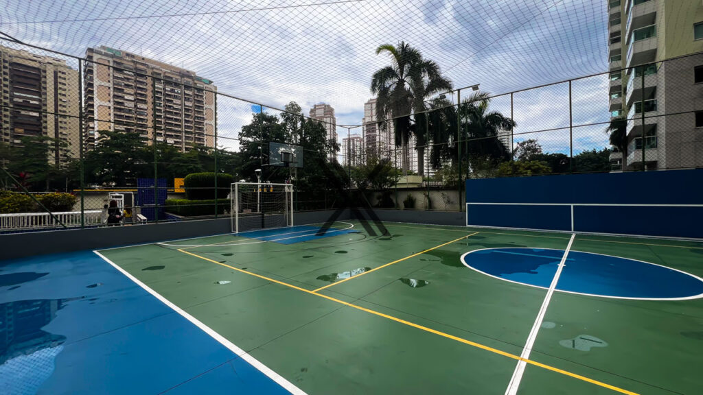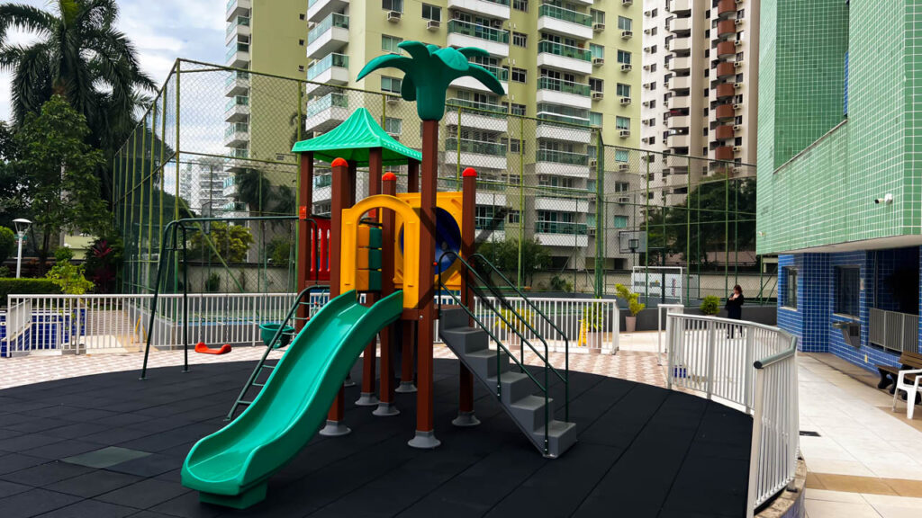 Na área de lazer do prédio, é possível usufruir de playground, piscina, academia, salão de festas, quadra poliesportiva e churrasqueira. O condomínio oferece portaria 24 horas, com controle de acessos e monitoramento por câmeras, além de vagas para visitantes.