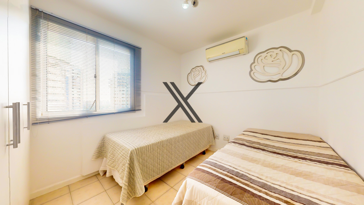 A área privativa apresenta 3 quartos, sendo 2 suítes, todos com boa quantidade de armários. Um banheiro social complementa o ambiente.