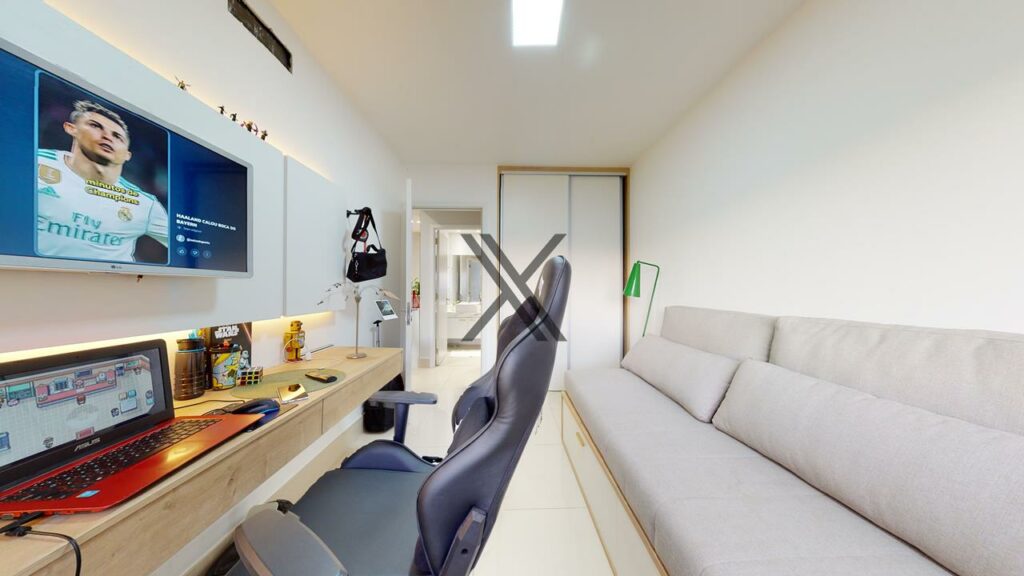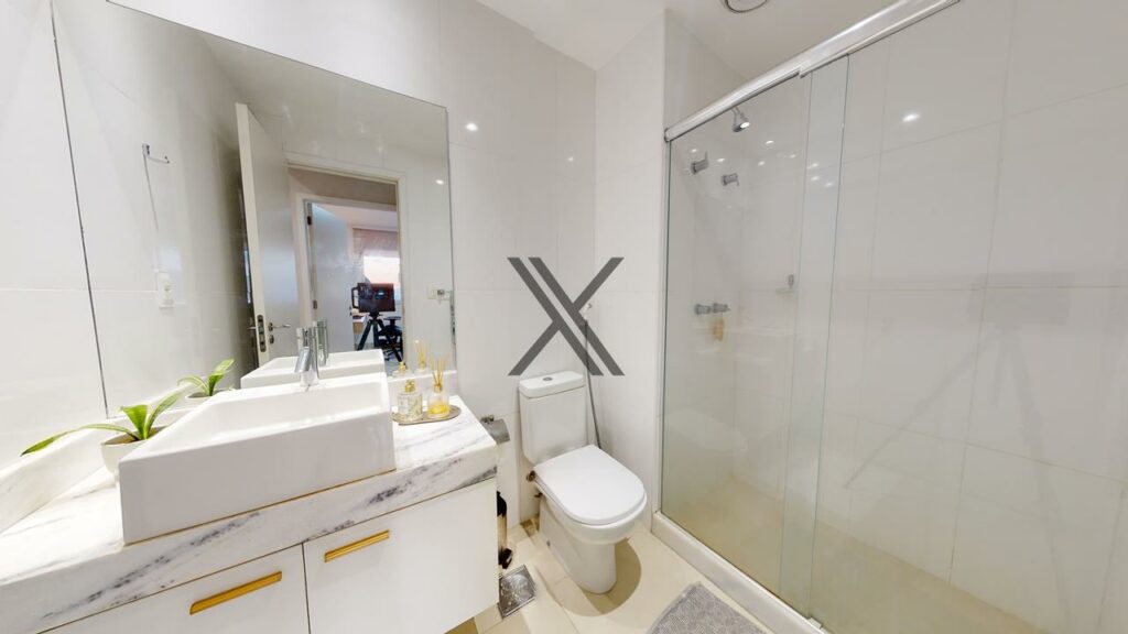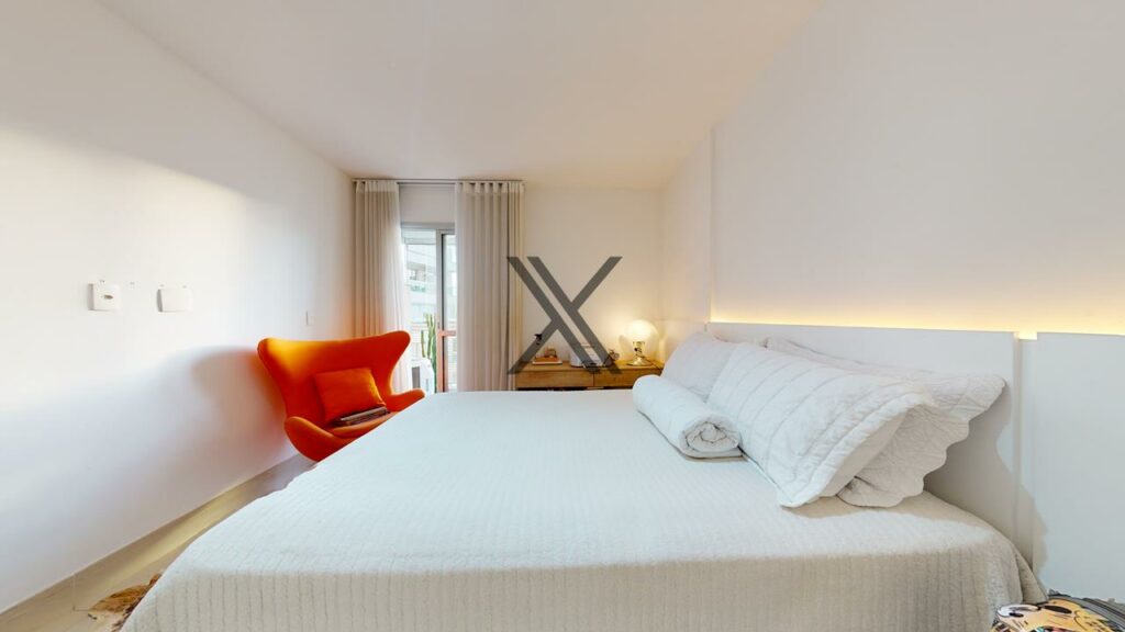 Na área privativa, estão 2 suítes bem distribuídas, que garantem privacidade e conforto para os moradores. Os quartos contam com armários planejados, que otimizam o espaço e proporcionam mais praticidade para o dia a dia. Além disso, a suíte principal ainda possui uma varanda exclusiva.