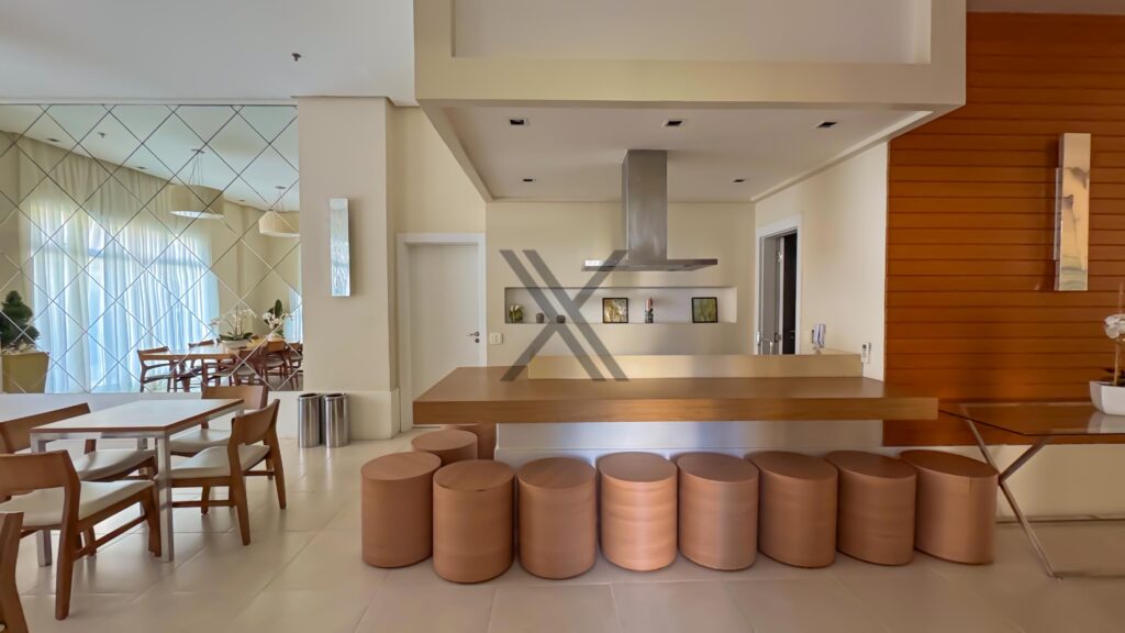 Na área social, a sala é ampla e convidativa, sendo perfeita para receber amigos e familiares em momentos especiais. Além disso, a varanda é um espaço espetacular, com uma vista deslumbrante para os pontos de destaque da região.