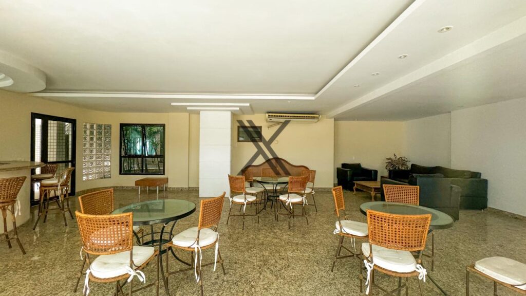 Na parte privativa, há 4 suítes, todas com armários, ar-condicionado e projeto de iluminação, além de um lavabo em apoio aos quartos e sala.