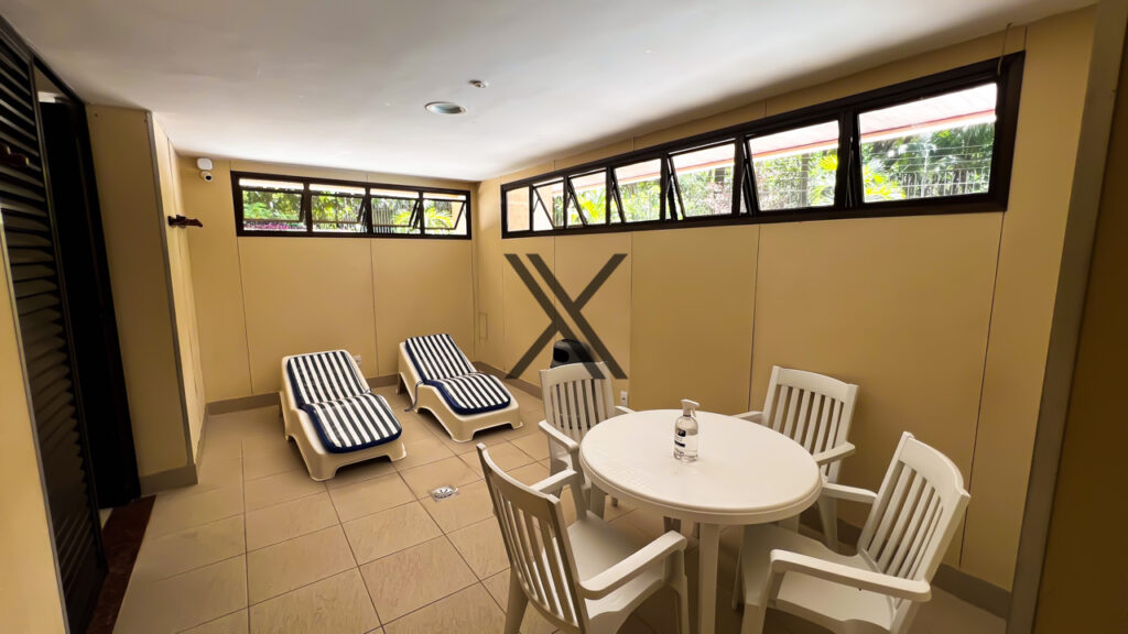 Na área de lazer do prédio, é possível usufruir de sauna seca e a vapor, academia, piscina (infantil e adulto), 2 salões de festas, salão de jogos, sala de reunião, parquinho, sala de repouso, quadra e mini mercado. O condomínio oferece portaria 24 horas, com controle de acessos e monitoramento por câmeras, além de vagas para visitantes.