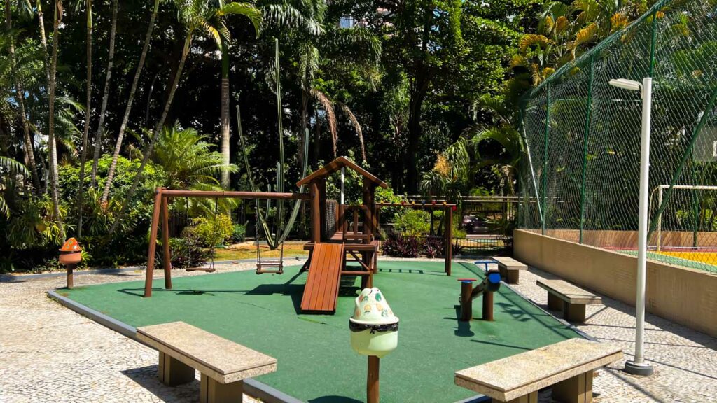 Na área de lazer do prédio, é possível usufruir de playground, quadra poliesportiva, piscina (adulto e infantil), salão de festas, 2 salões de jogos, academia grande, sauna à vapor com hidromassagem, restaurante, minimercado, sala de estética e sala de coiffeur. O condomínio oferece portaria 24 horas, com controle de acessos e monitoramento por câmeras, além de vagas para visitantes.