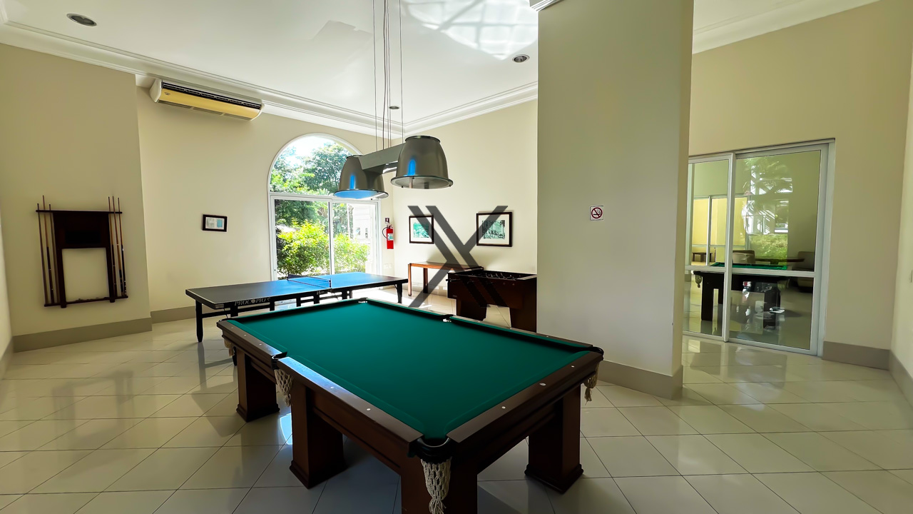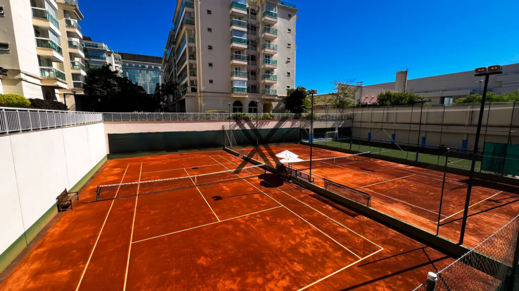 Na área de lazer do prédio, é possível usufruir de piscina, academia, quadra de tênis (saibro), quadras de areia e de grama sintética, pista de skate, squash, salão de festas, parquinho, brinquedoteca, salão de jogos, restaurante, mini mercado e salão Werner. O condomínio oferece portaria 24 horas, com controle de acessos e monitoramento por câmeras, além de vagas para visitantes.