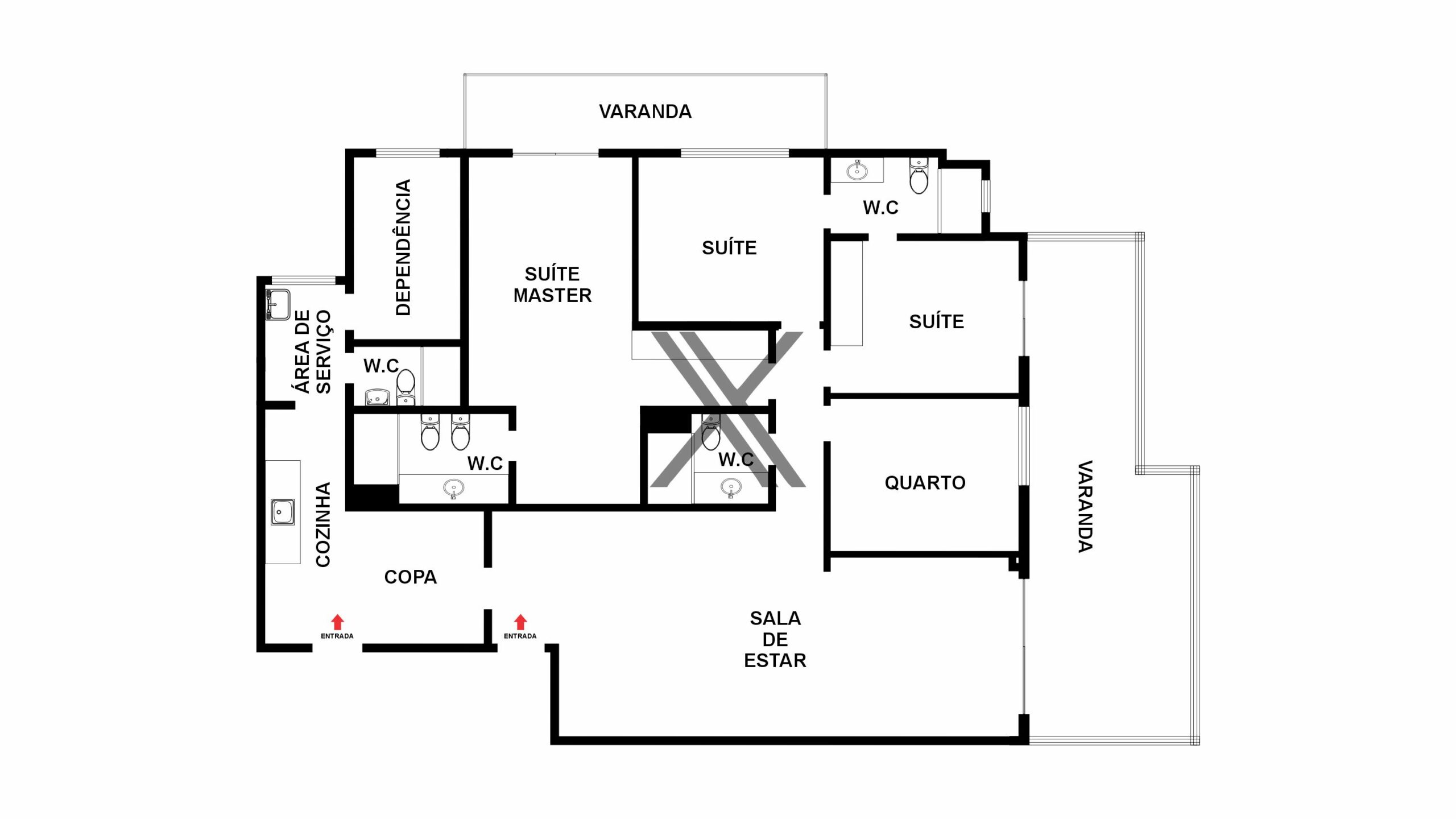 A parte privativa apresenta 4 quartos, sendo 3 suítes, 2 canadenses, todos com um ótimo tamanho e armários embutidos. A suíte master possui uma varanda privativa e espaço para cama king size. Um banheiro social de apoio completa o ambiente.