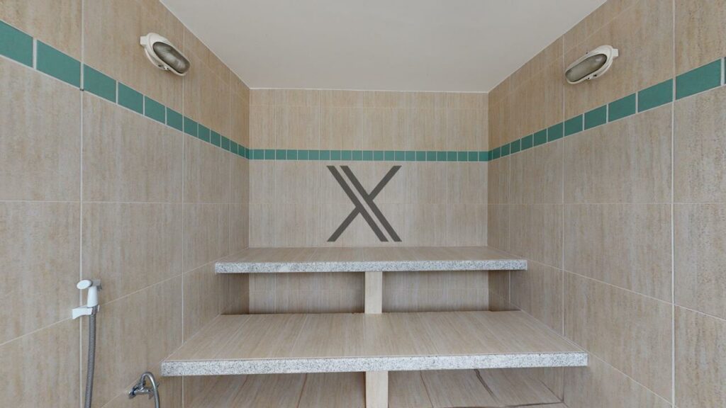 A área de lazer, situada no jardim, é perfeita para receber amigos e familiares, com uma piscina privativa e uma churrasqueira completa. Ela também dispõe de sauna e de hidromassagem. O jardim é bem cuidado e oferece um espaço tranquilo para relaxar e apreciar a paisagem.