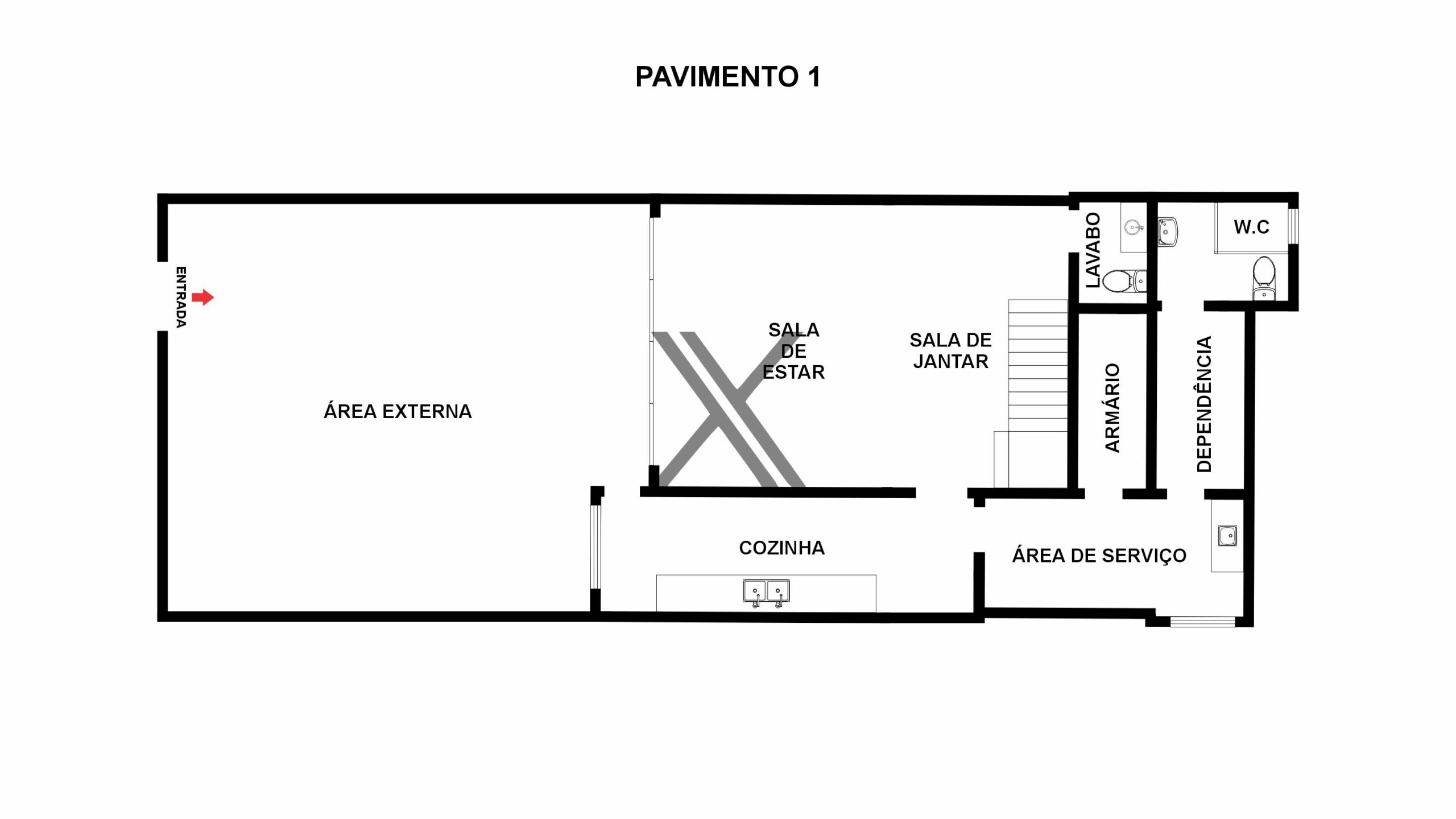 O primeiro pavimento apresenta uma sala em dois ambientes, integrada com a área externa, além de um ótimo lavabo de apoio às visitas. Também neste pavimento encontramos a cozinha, a qual possui armários sob medida, longas bancadas e iluminação natural. Em anexo, está a área de serviço e dependência completa para funcionários.