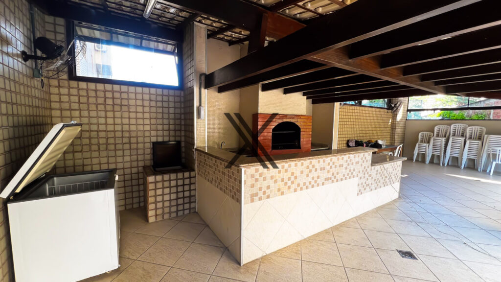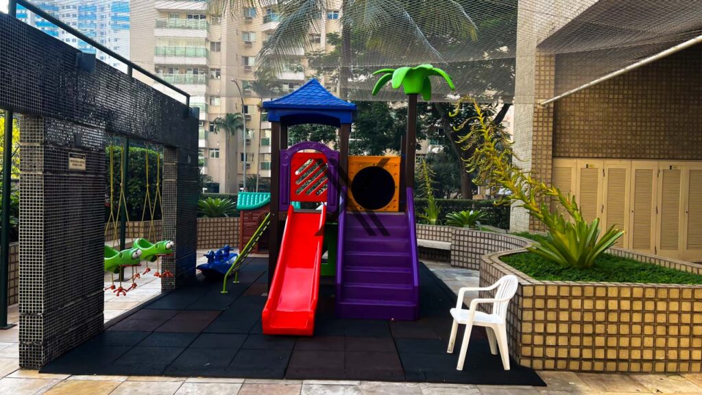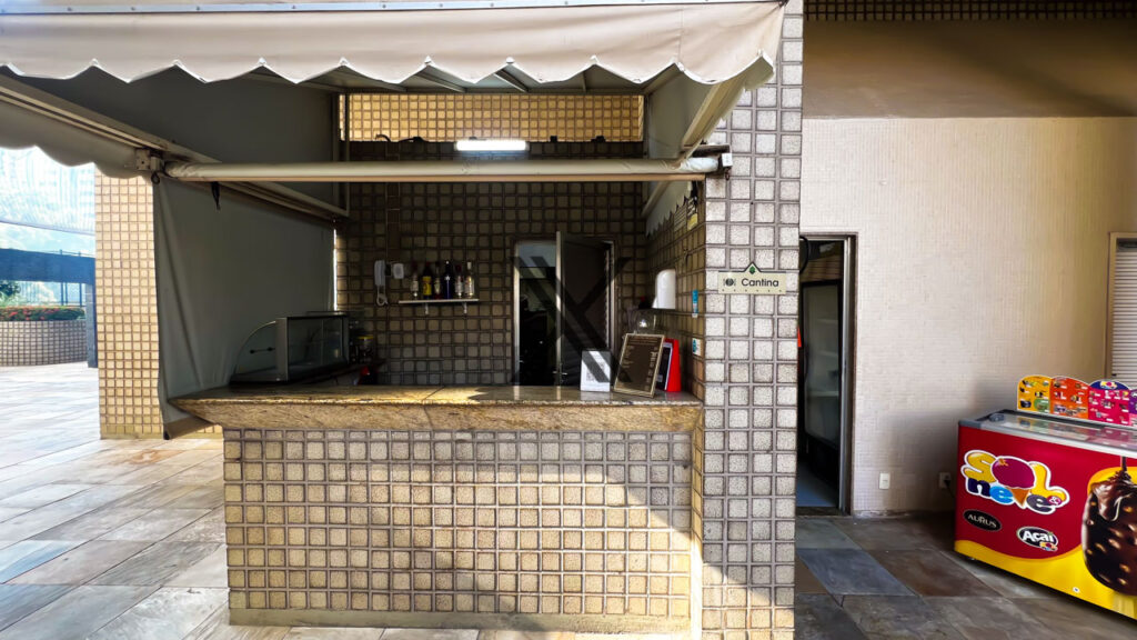 Na área de lazer do prédio, é possível usufruir de playground, piscina, bar, sauna, churrasqueira, academia, brinquedoteca e mini mercado. O condomínio oferece portaria 24 horas, com controle de acessos e monitoramento por câmeras, além de vagas para visitantes.