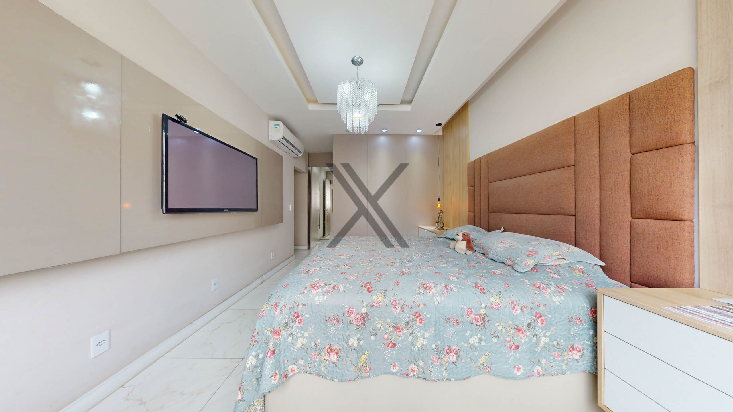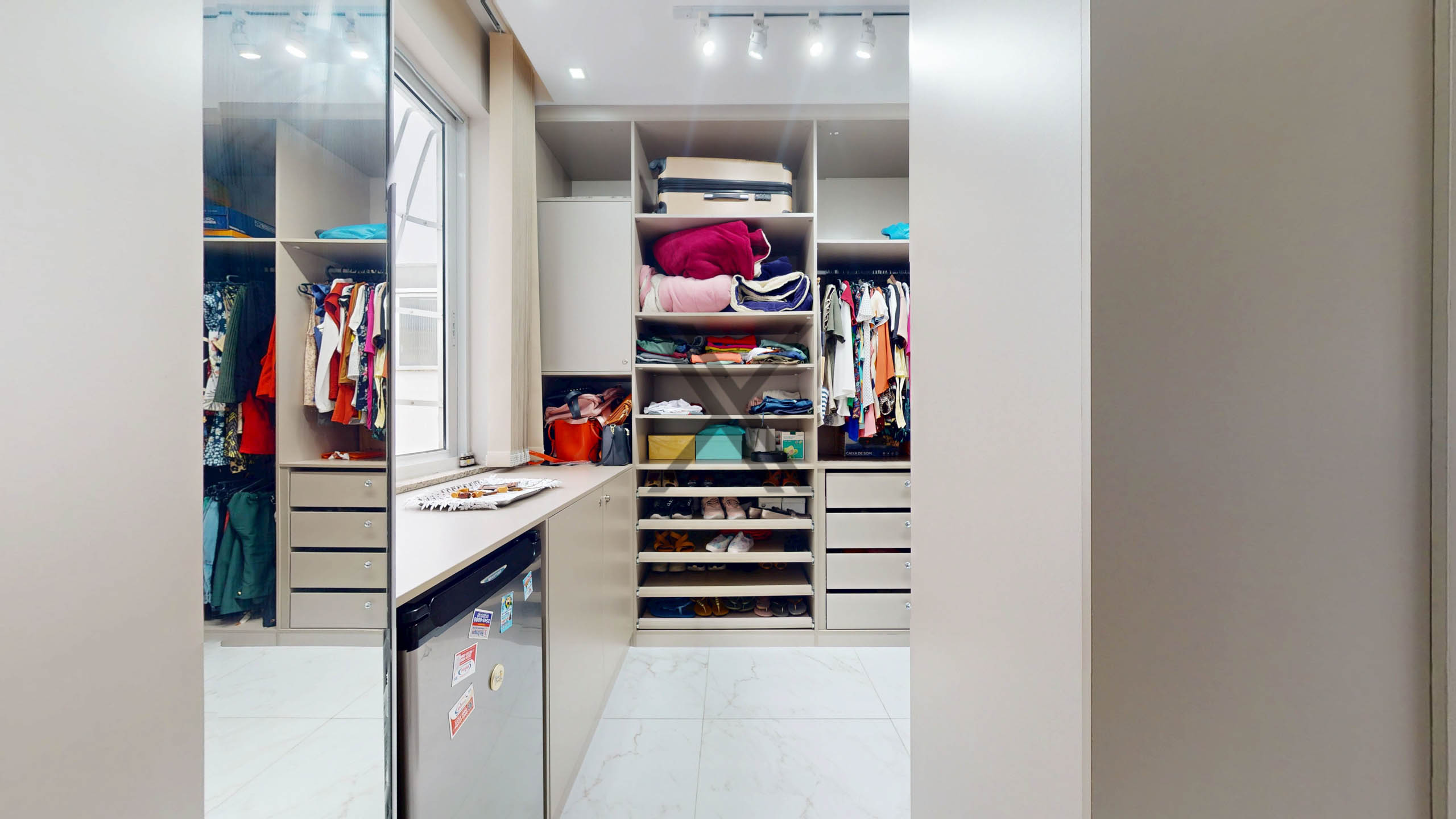 A área privativa possui 3 quartos, sendo 1 suíte, todos com excelente tamanho e splits instalados, além de um banheiro social. A suíte é um show à parte pois conta com um belíssimo “walk-in closet” e vista para o Cristo Redentor.