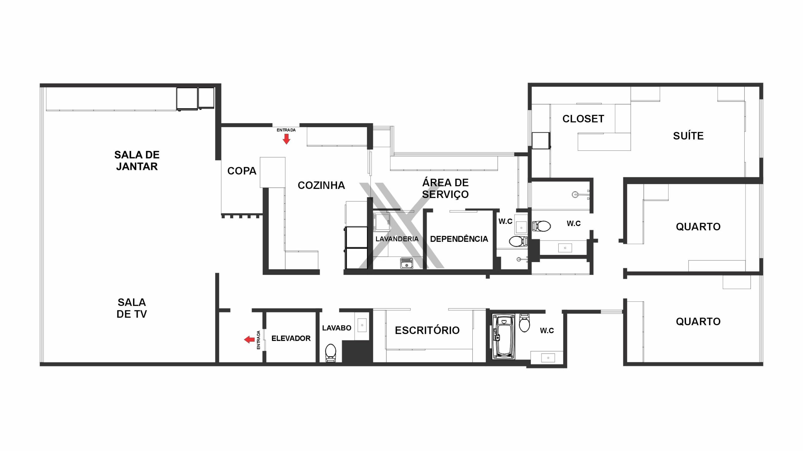 Há ainda no espaço social um escritório e um lavabo para servir as visitas.