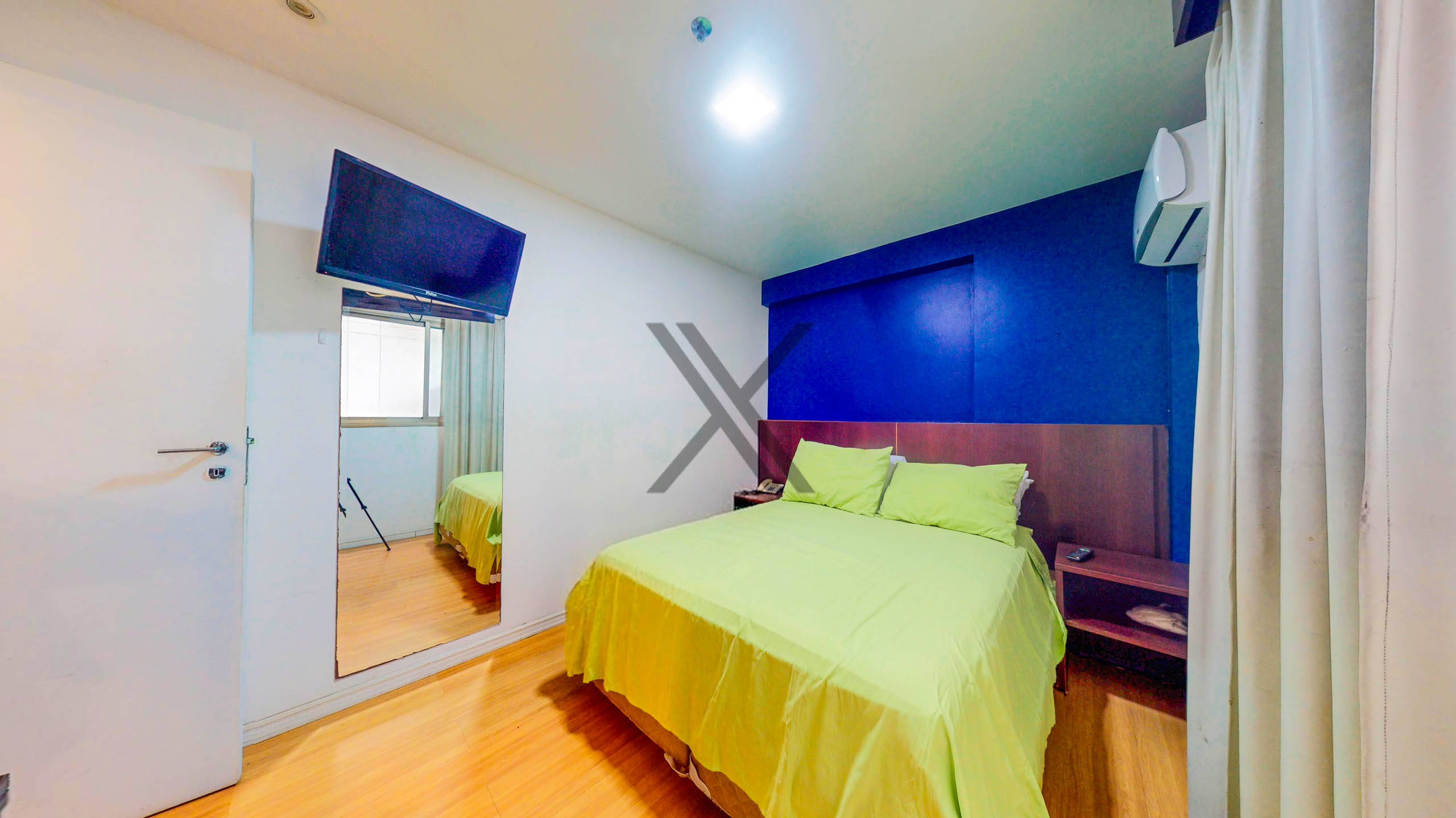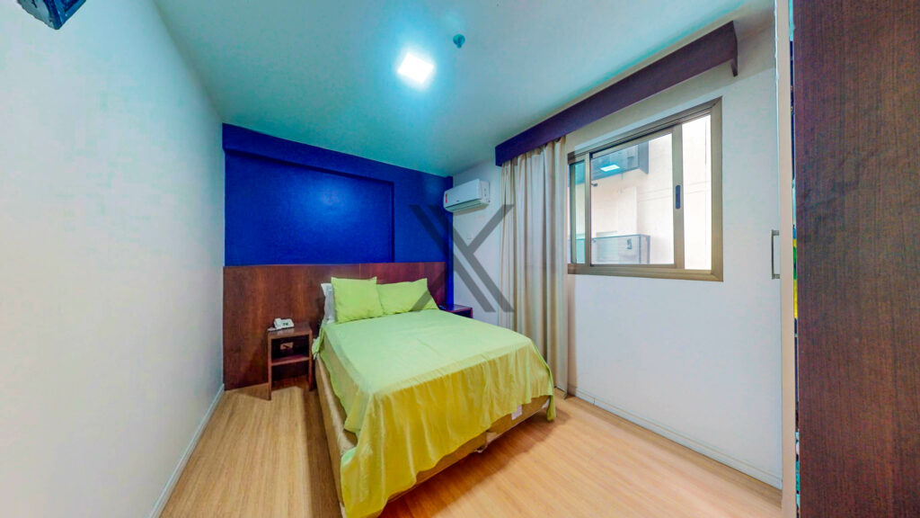 A área privativa apresenta um quarto de bom tamanho e, assim como a sala, é bem iluminado. Por fim, temos um banheiro social que atende ao quarto, e também à sala.