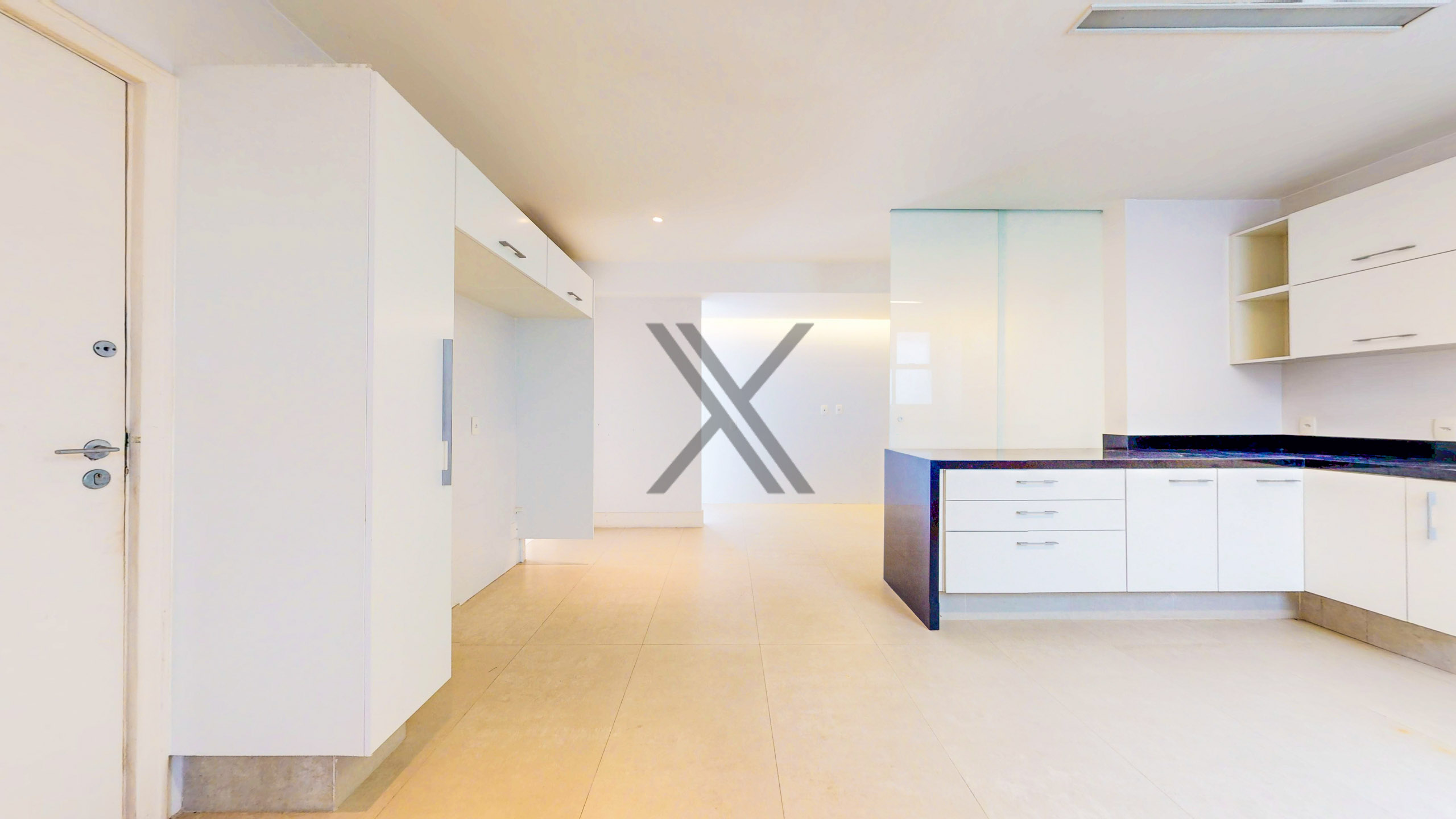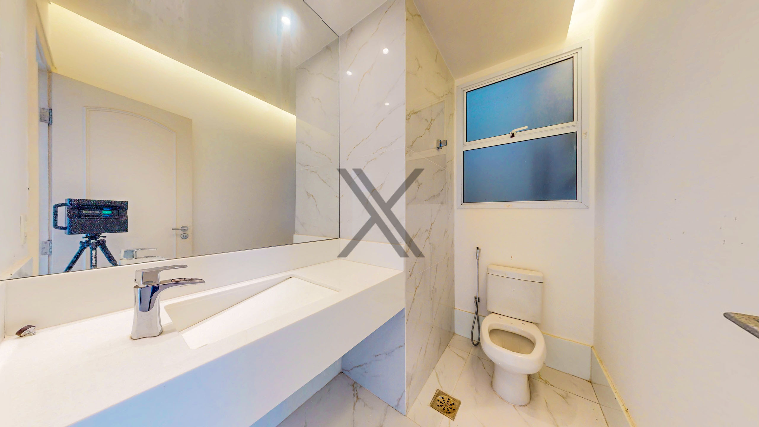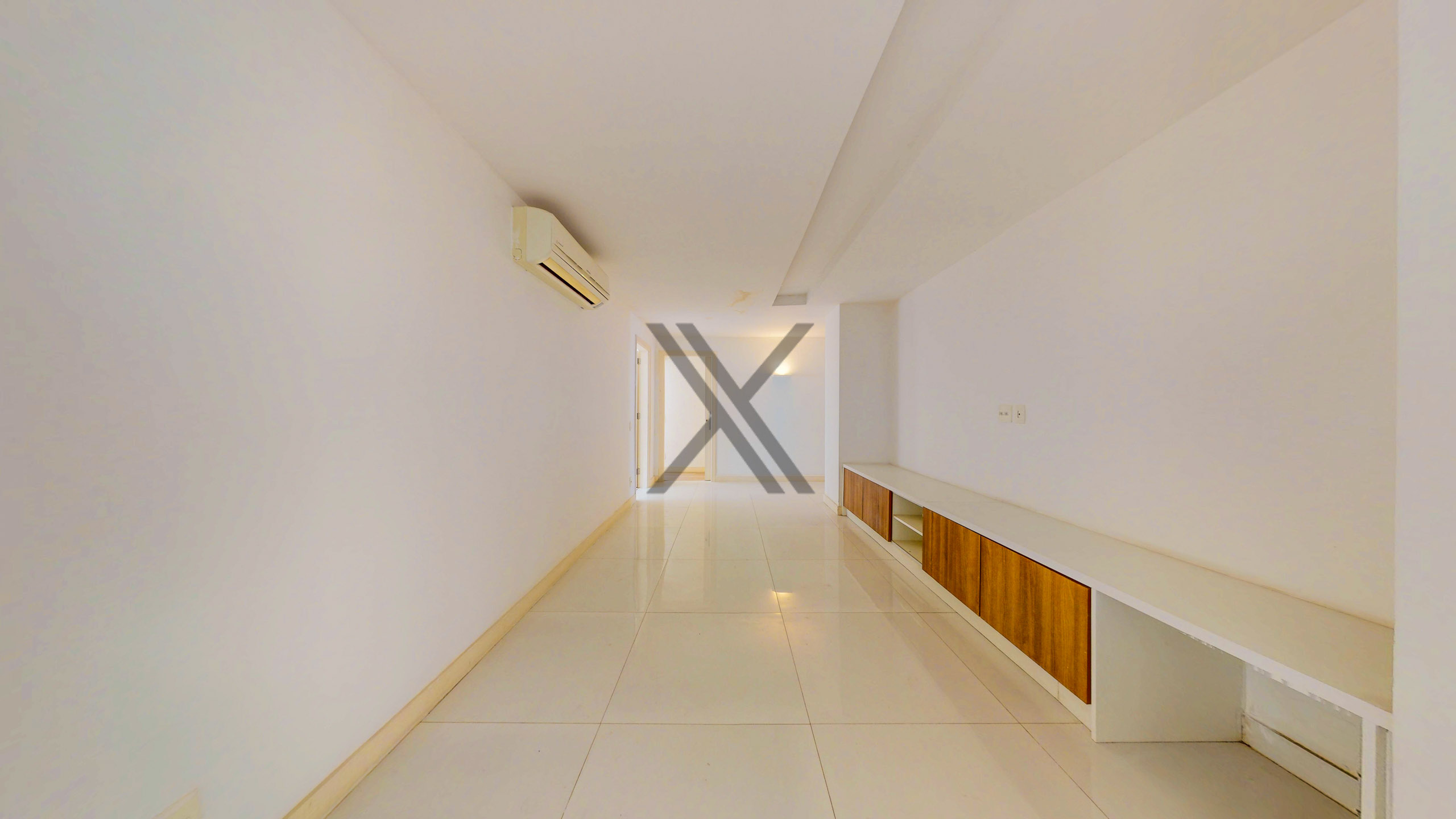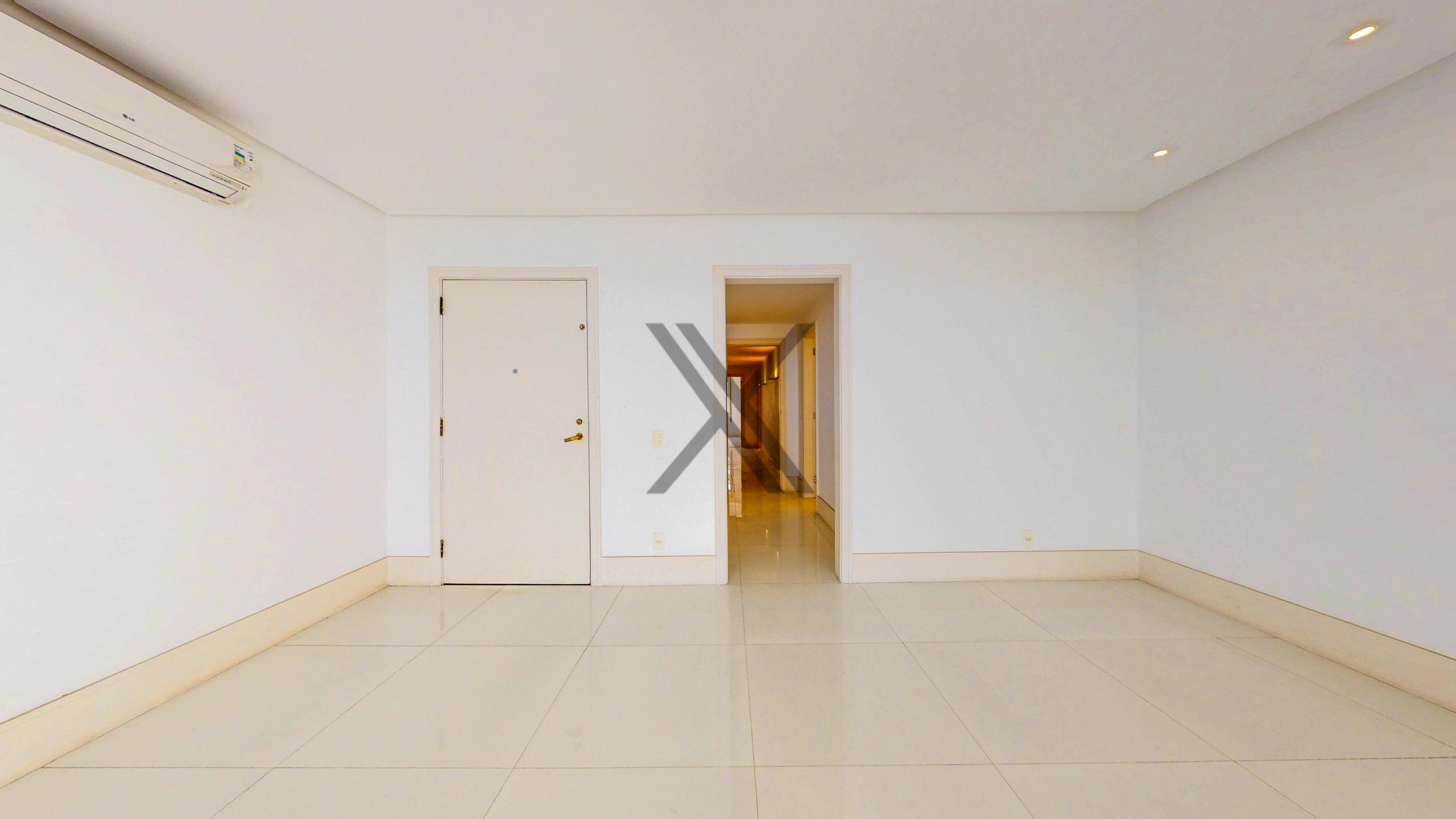 A área social apresenta uma exuberante sala, a qual pode ser dividida em 3 ambientes amplos, com excelentes iluminação e ventilação naturais devido às amplas janelas, além da vista eterna para o mar. Todo o ambiente conta com piso frio e ares condicionados splits para maior conforto térmico. No acesso à área privativa, temos um lavabo de apoio às visitas e espaço que pode ser utilizado como escritório.