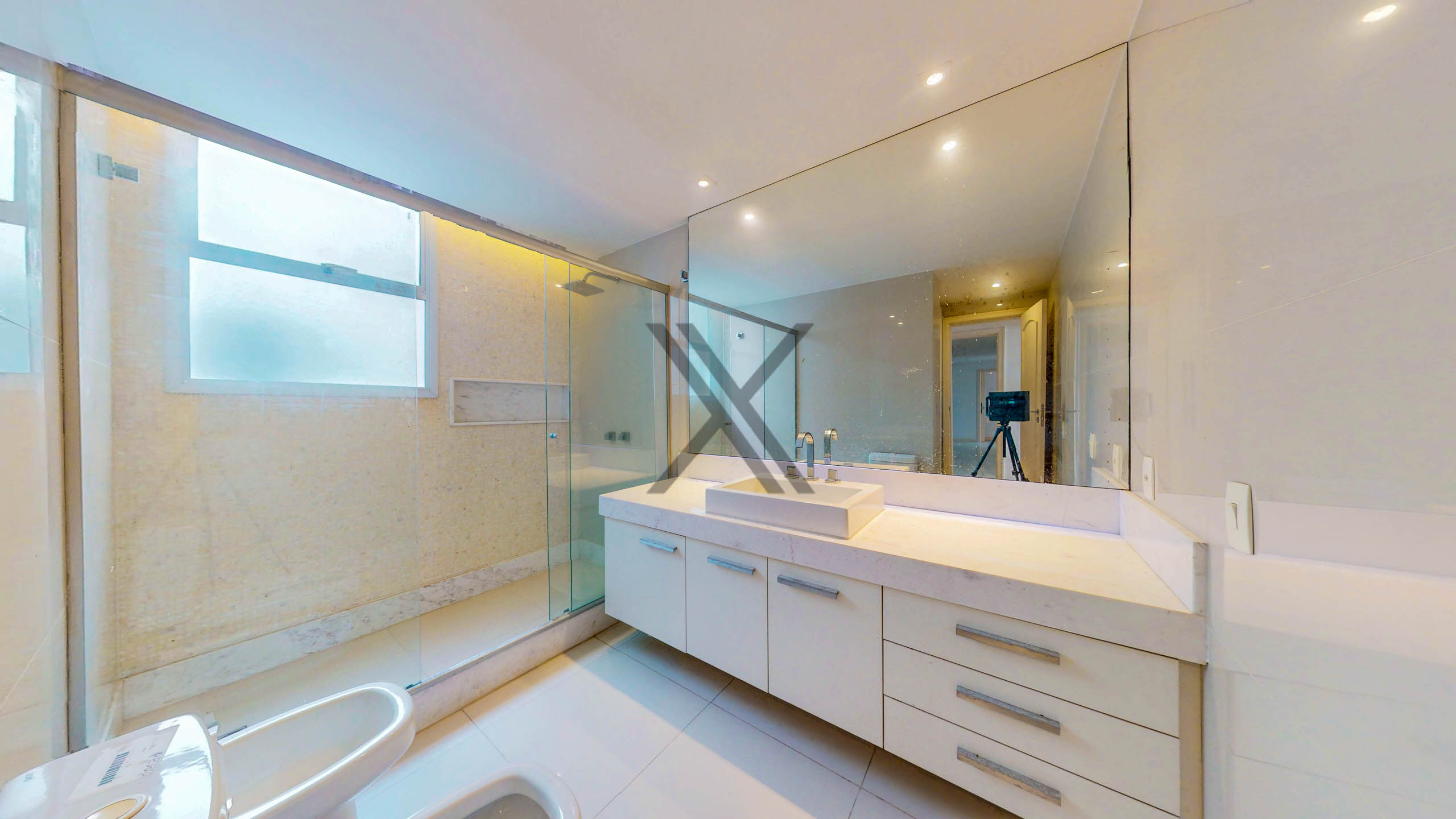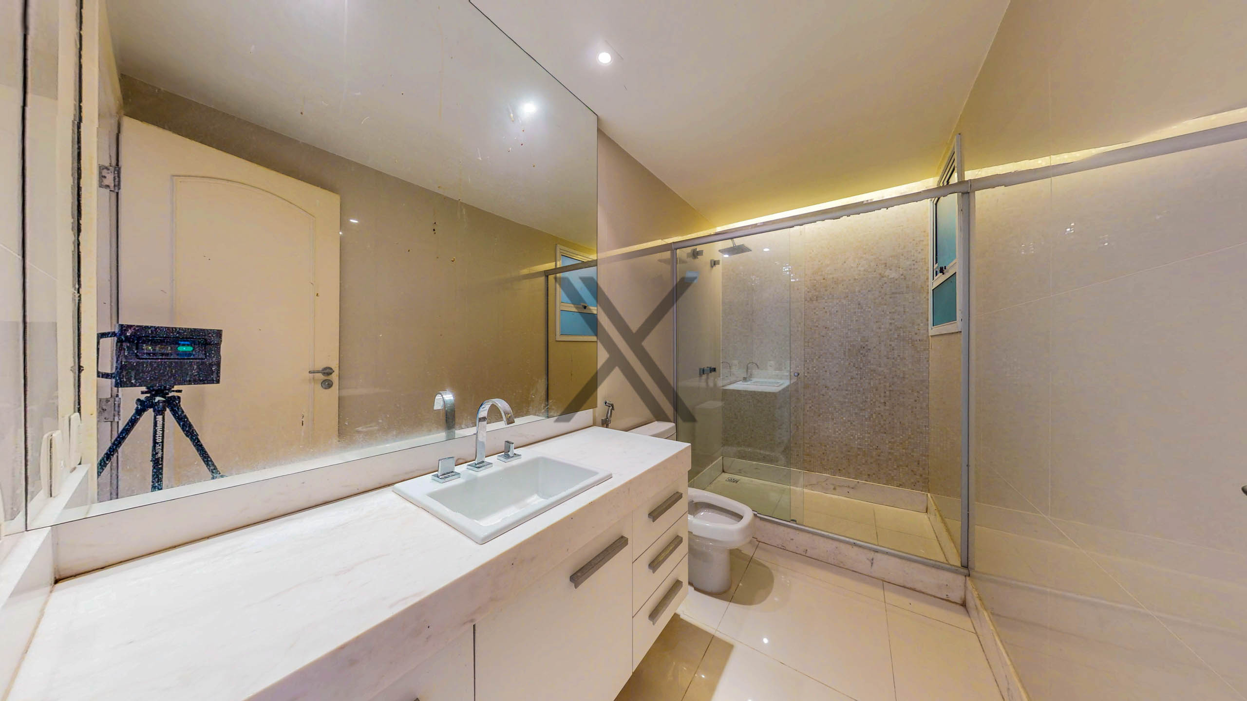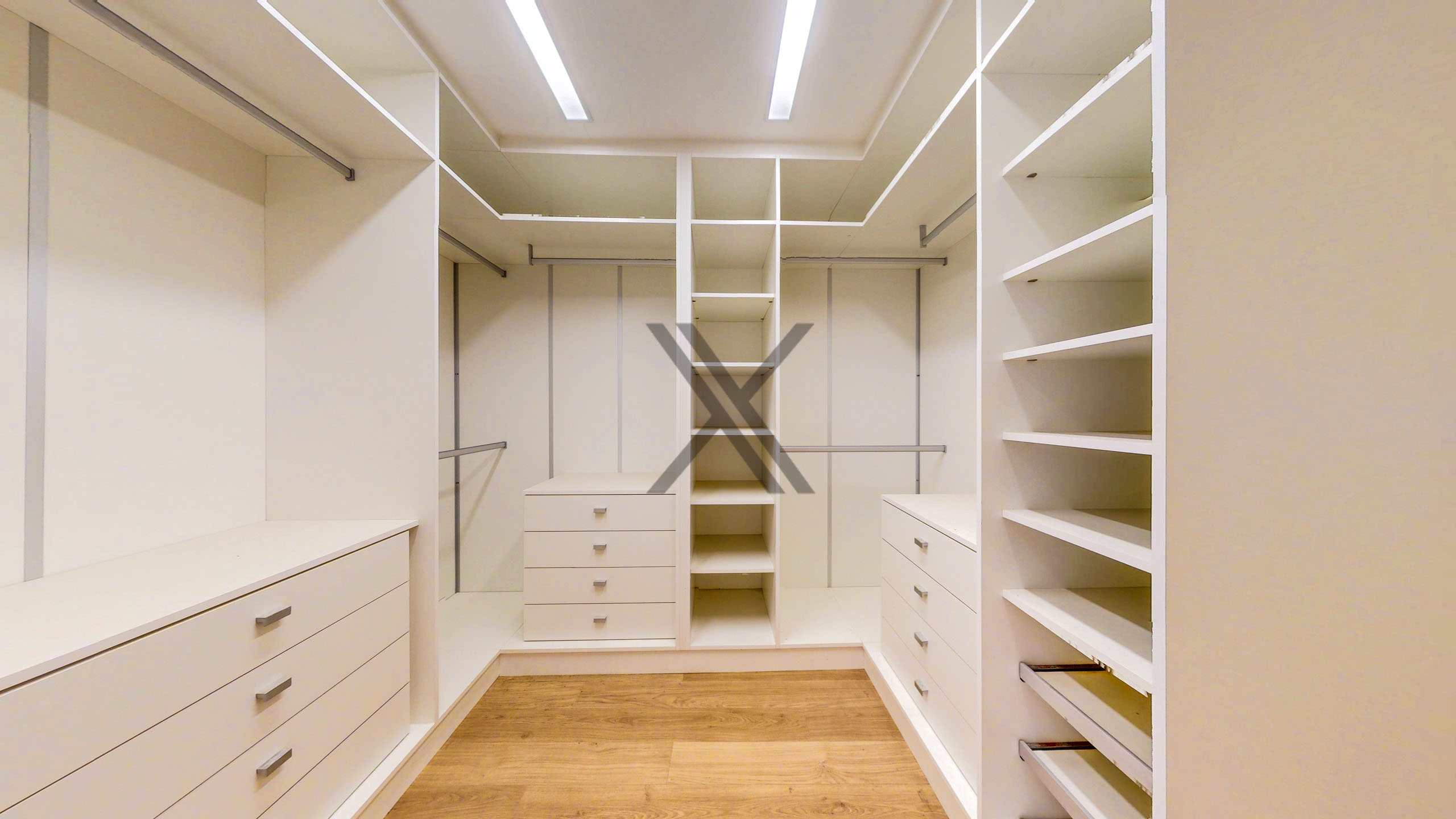 A área privativa conta com 4 quartos, sendo 2 suítes, todos de excelente tamanho, splits instalados e armários embutidos. A suíte master é um show à parte, com walk-in closet e banheiro amplo com pia dupla. A área ainda possui uma sala íntima para os moradores.
