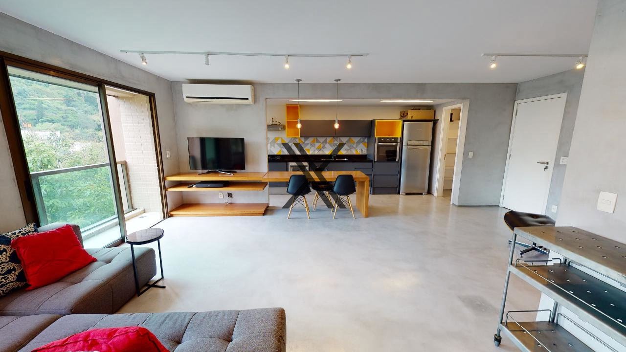 Apartamento de 75m², bem iluminado, 100% reformado, decorado e equipado em prédio novo na Gávea. A localização é estratégica, pois permite fácil acesso para o Leblon e demais bairros da Zona Sul, bem como para a Barra da Tijuca. O prédio é de esquina e agrega um comércio no térreo (mercado). O apartamento tem vista acima da copa das árvores, o que proporciona total privacidade aos moradores.