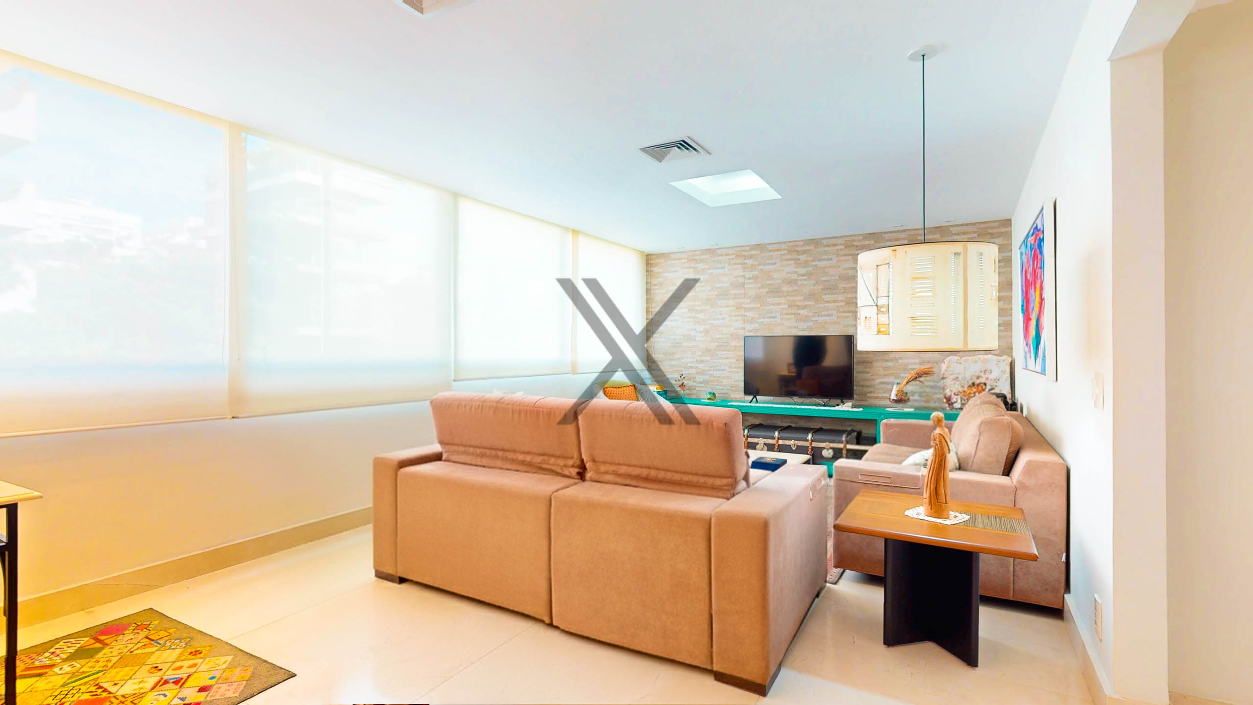Na parte social, sala em dois ambientes amplos, com excelente pé-direito, belo piso, boa iluminação natural e uma agradável vista acima da copa das árvores, trazendo uma sensação de aconchego e privacidade para o imóvel. Na parte privativa, distribuição ampla que leva a 3 quartos (sendo 1 suíte) servidos de armários, ótima iluminação natural e walk-in closet na suíte. Os banheiros (suíte e social) possuem um ótimo tamanho e armários. Um dos quartos possui uma bela vista para o Cristo Redentor e possibilidade de ser feita mais uma suíte.