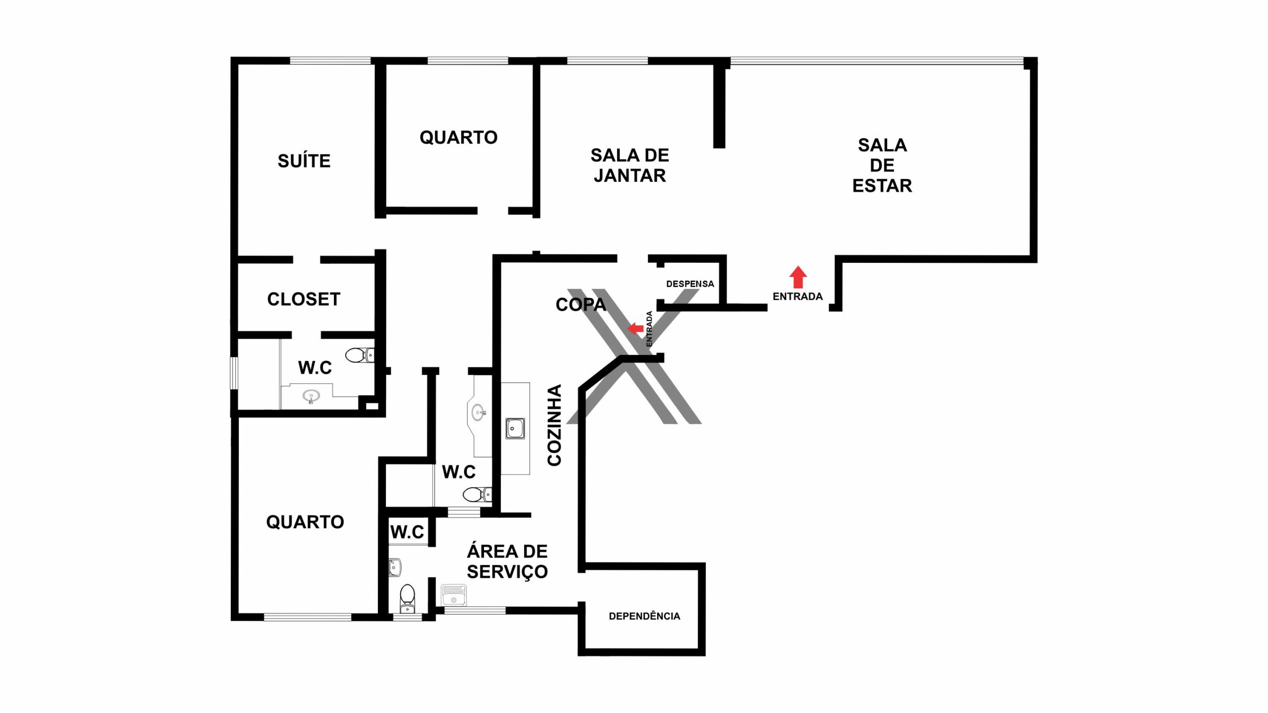 A planta original possui 4 quartos, porém um deles foi utilizado para ampliação da sala, podendo facilmente ser revertido.