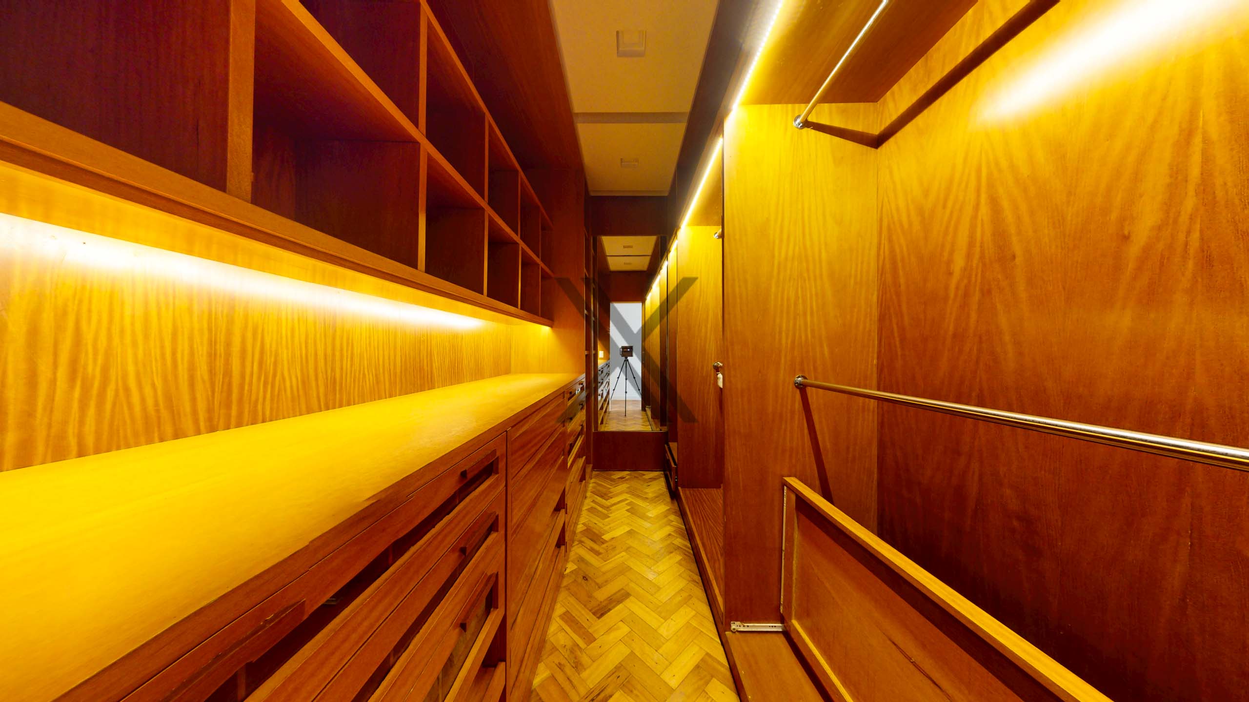 Na área privativa encontram-se 3 suítes, todas com metragens generosas e ótima iluminação natural para o ambiente. A suíte master é um show à parte, com um amplo walk-in closet e um belo banheiro. A área conta ainda com um bom espaço para escritório e um jardim de inverno.