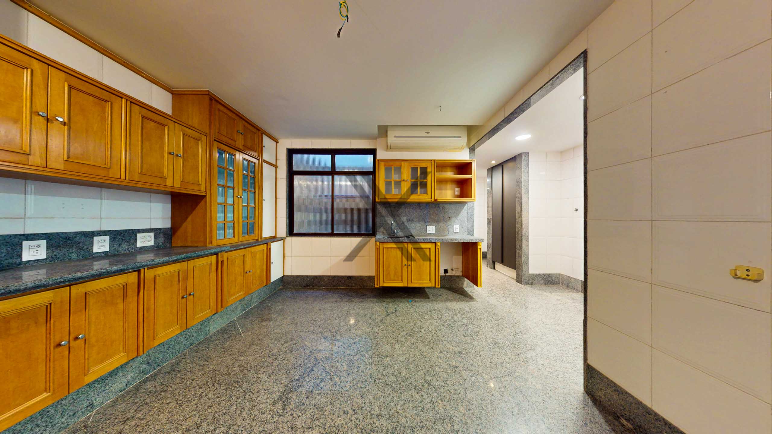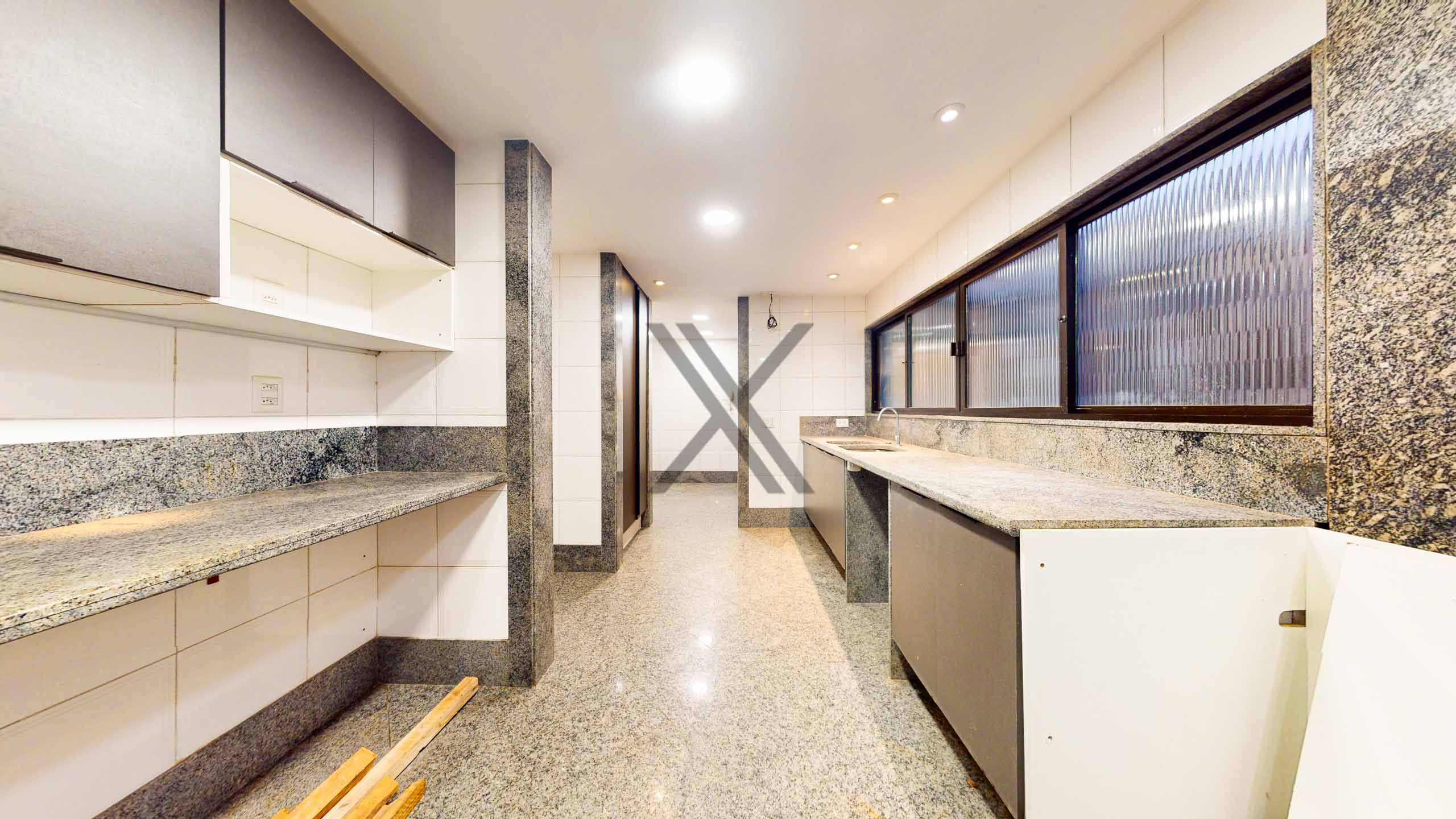 A cozinha possui uma excelente copa, grande quantidade de armários e ótimo espaço de circulação. Em anexo, está uma generosa área de serviço com duas dependências completas para funcionários.
