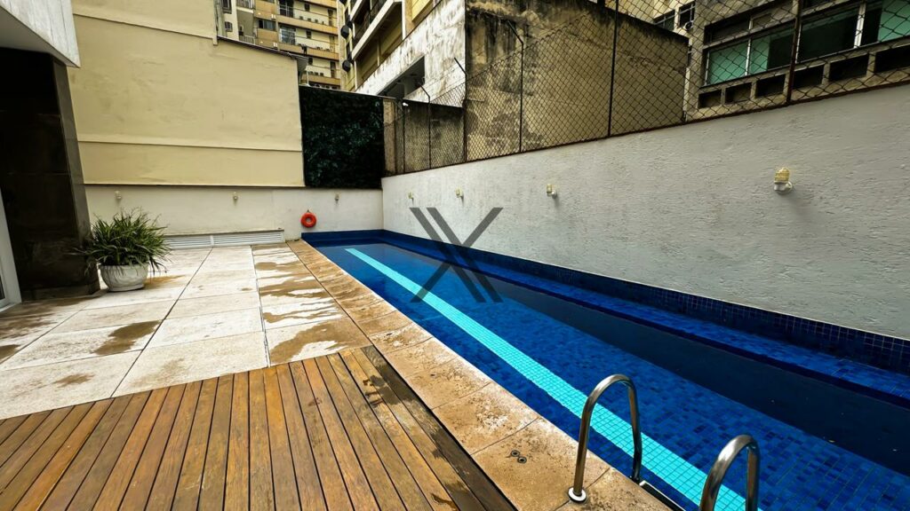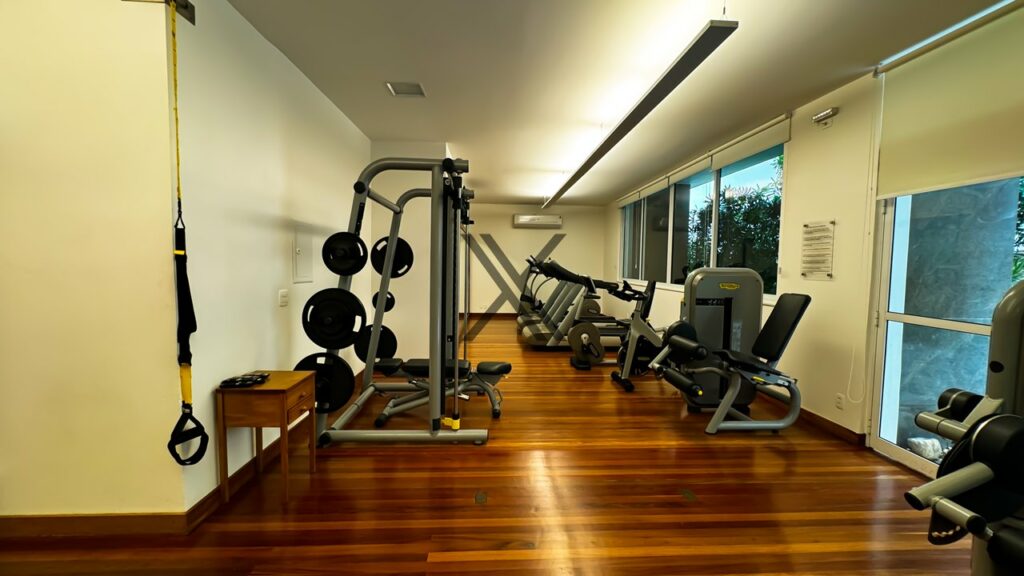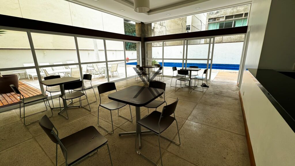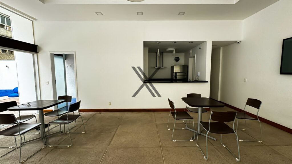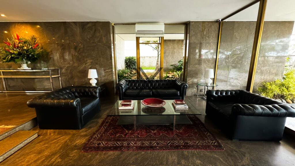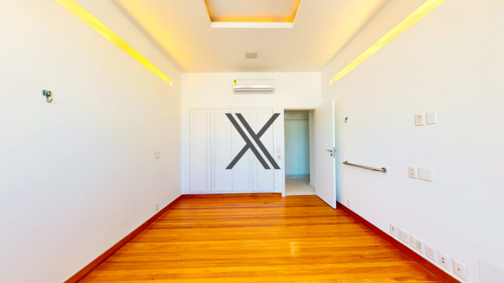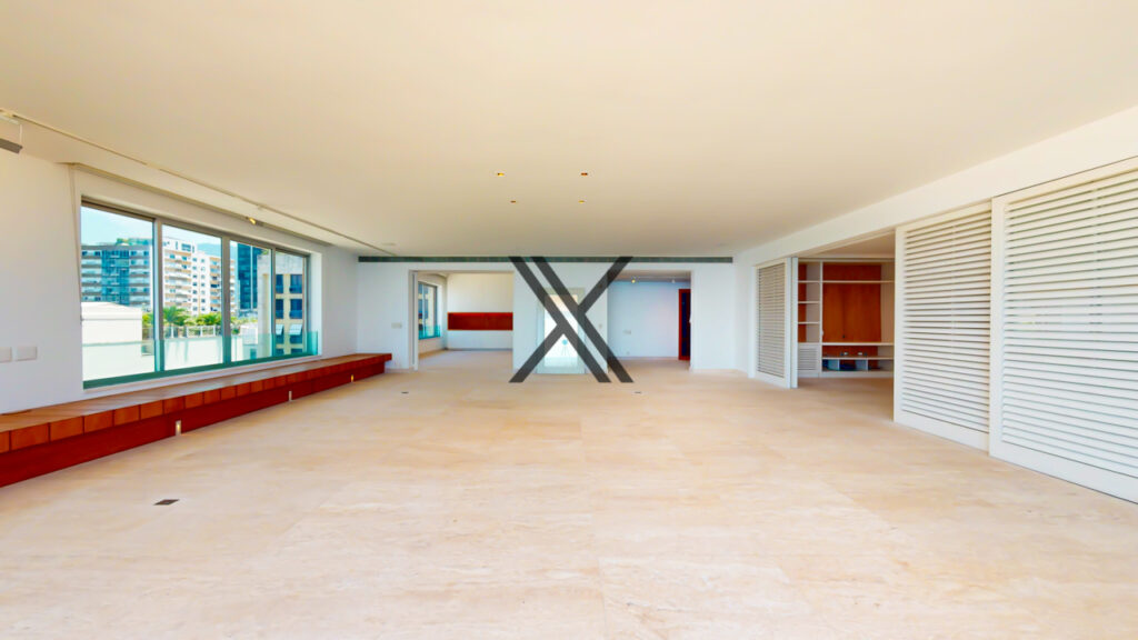 Na área privativa, há 4 quartos, sendo 3 suítes. Todos possuem metragens generosas, armários, ar-condicionado e ótima iluminação natural para o ambiente. A suíte master é um espetáculo à parte, com walk-in closet amplo e uma excelente área total.