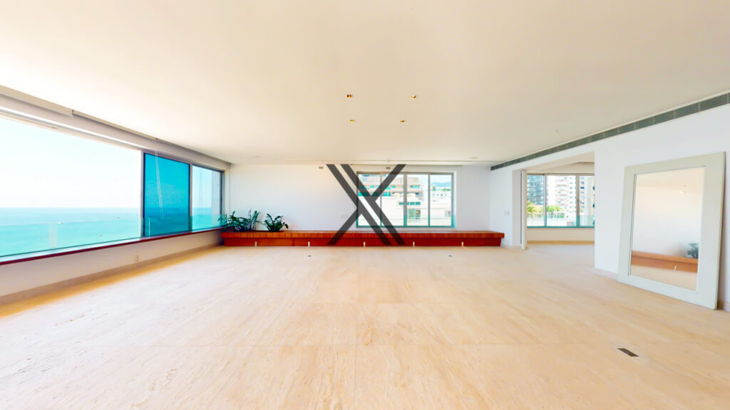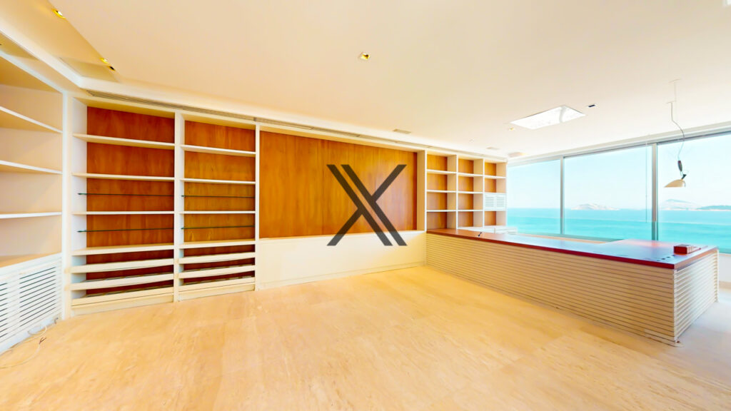 Na parte social, o apartamento possui um belo hall de entrada com adega, uma sala espetacular em 4 ambientes com vista imponente para toda a Praia de Ipanema, belo piso em mármore travertino italiano, sonorização e pé-direito alto, deixando o ambiente ainda mais confortável e amplo. Ao lado, em continuação à sala, há um escritório em 2 ambientes também utilizado como sala de TV.