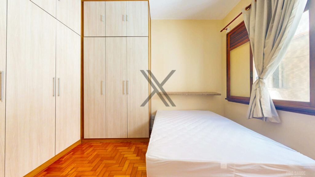 A área privativa conta com 2 quartos confortáveis e de bom tamanho, além de amplo banheiro social.