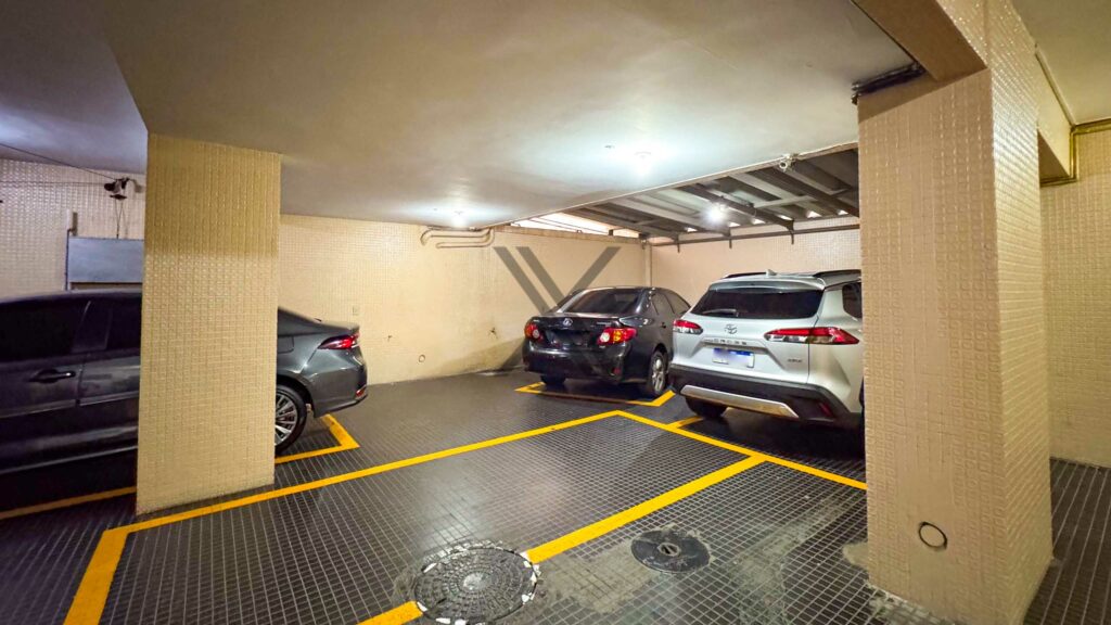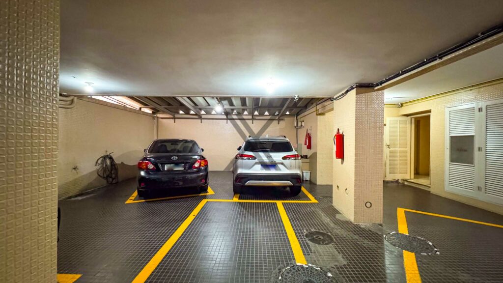Na parte privativa, são 2 quartos, sendo 1 suíte, ambos com boa iluminação, armários e ares-condicionados instalados. Um banheiro social de apoio à sala e ao quarto que não é suite complementa o ambiente. Originalmente, o imóvel possui 3 quartos, porém um deles foi utilizado para ampliação da suíte, podendo facilmente ser revertido.