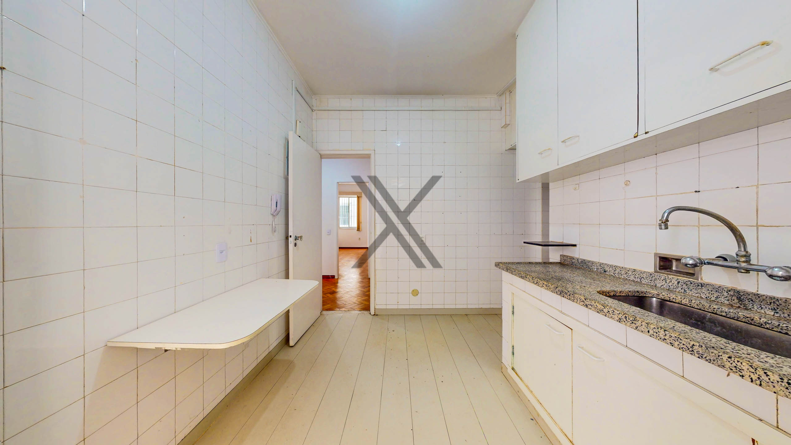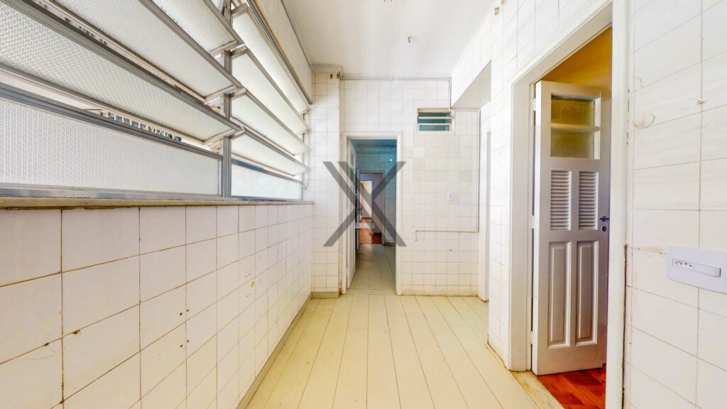 A área social é composta por uma sala em L, que pode ser dividida em 2 ambientes com conforto, amplas janelas que proporcionam bastante luz natural, além de piso original em espinha de peixe muito bem conservado.