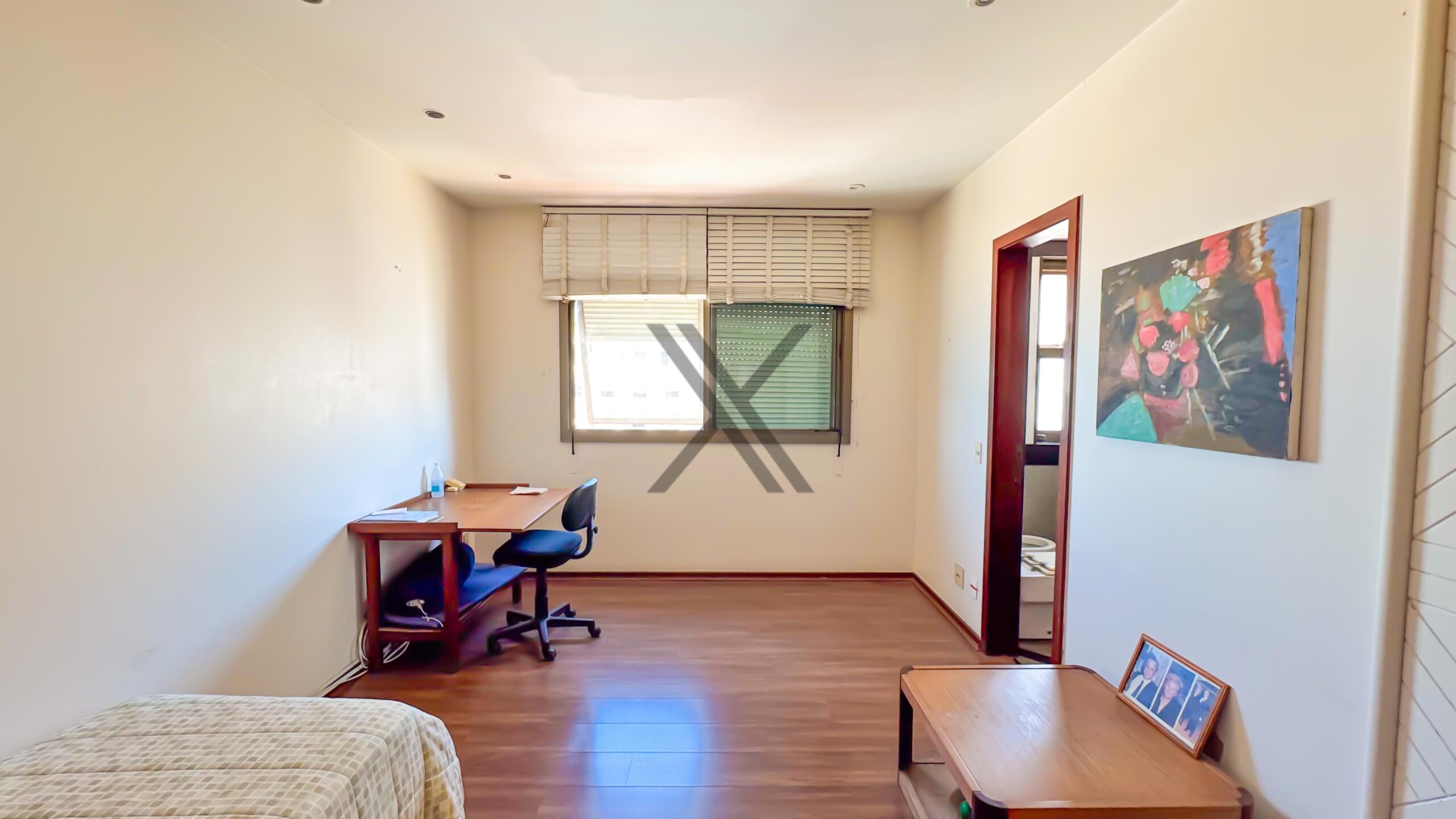 A área privativa conta originalmente com 4 quartos. Hoje, o imóvel está com 2 suítes bem amplas e com ótima iluminação natural.