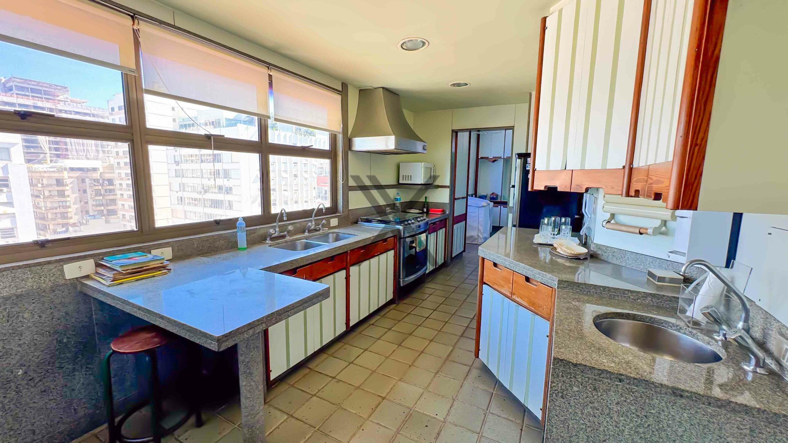 A cozinha possui uma excelente copa, com grande quantidade de armários e amplo espaço de circulação. Em anexo, estão a área de serviço e 2 dependências para funcionários.