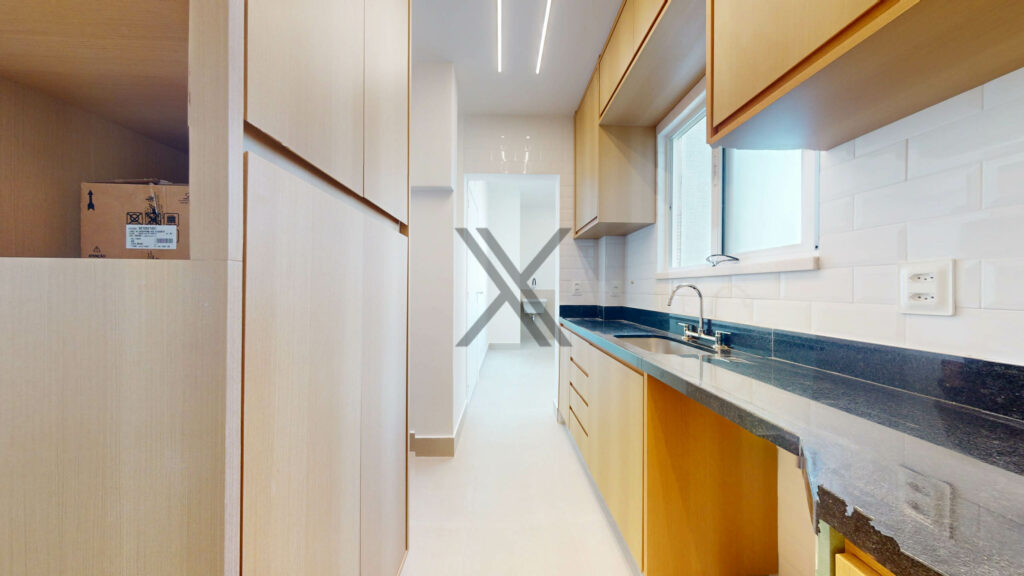 A cozinha possui um bom tamanho e está toda equipada com armários planejados, forno, cooktop e coifa. Em anexo, área de serviço com dependência completa para funcionários.