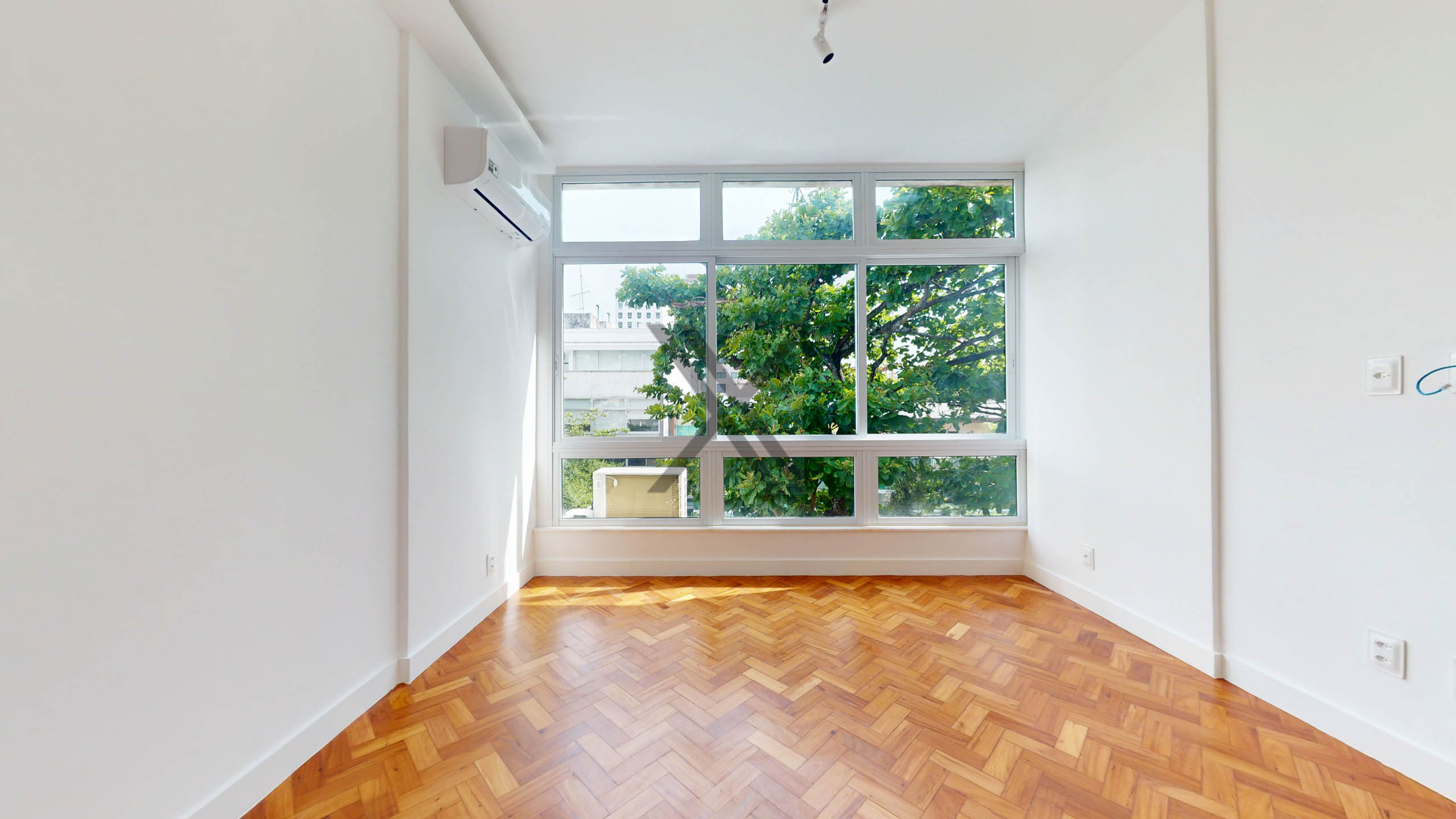 A área social é composta por uma sala que pode ser dividida em 2 ambientes com conforto, amplas janelas, com vista para a copa das árvores, que proporcionam bastante luz natural, ar condicionado split instalado, além de piso de madeira em tábua corrida.