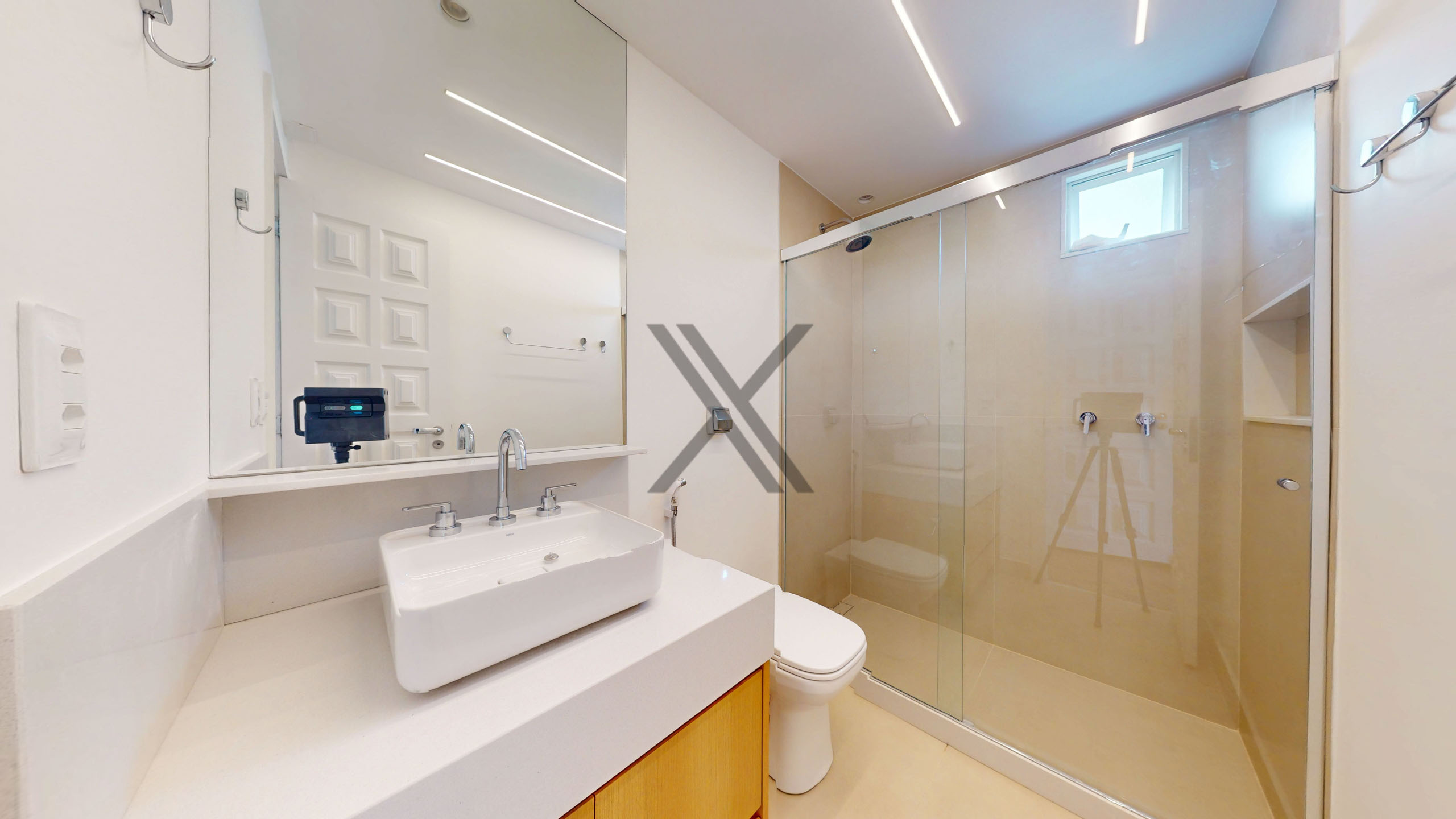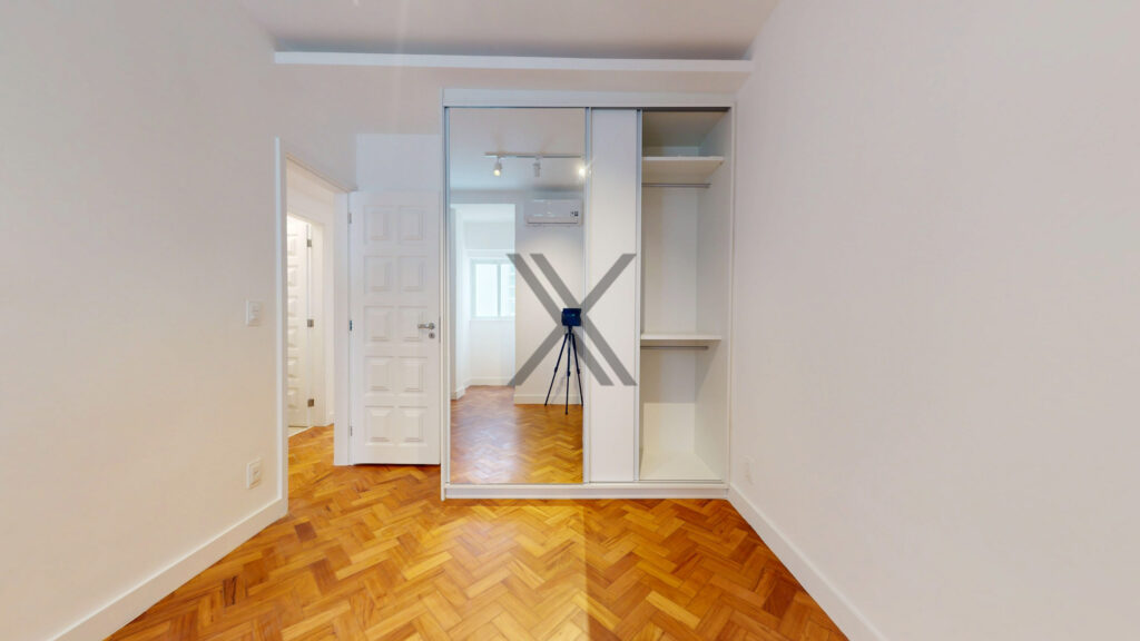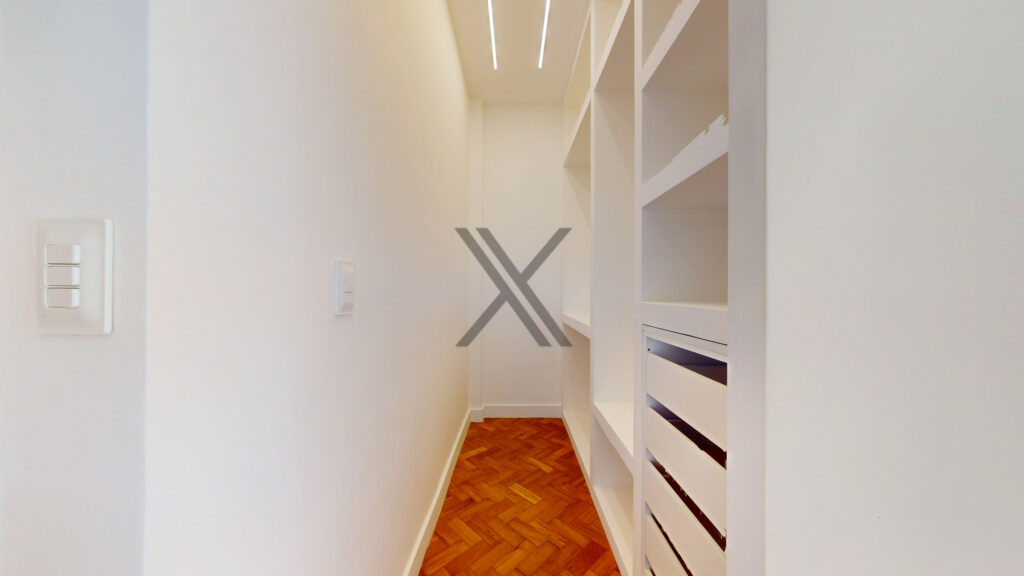 Na parte privativa, o imóvel possui 3 quartos, sendo 1 suíte, todos com armários sob medida, ares condicionados e piso original espinha de peixe muito bem conservado. Tanto o banheiro social quanto o da suíte foram finamente reformados.
