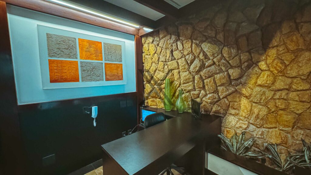 Na parte privativa, são 2 quartos, sendo 1 suíte, todos de bom tamanho, com ares-condicionados, armários embutidos e projeto luminotécnico. Um banheiro social de apoio aos quartos e à área social complementa o ambiente.