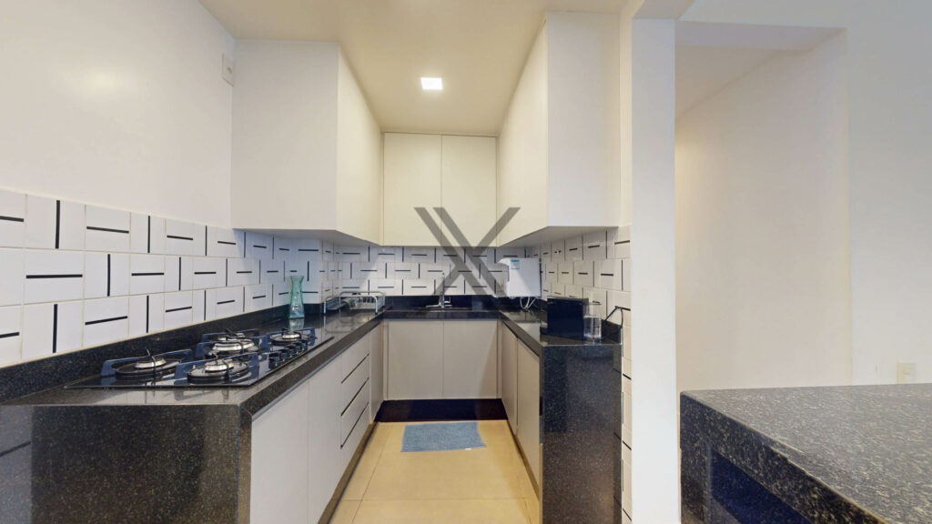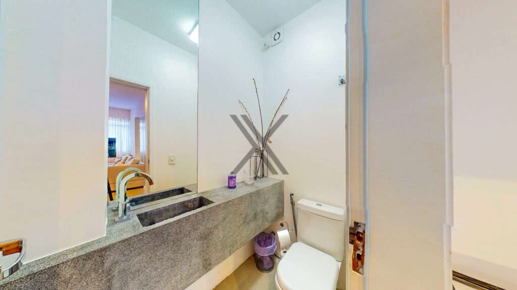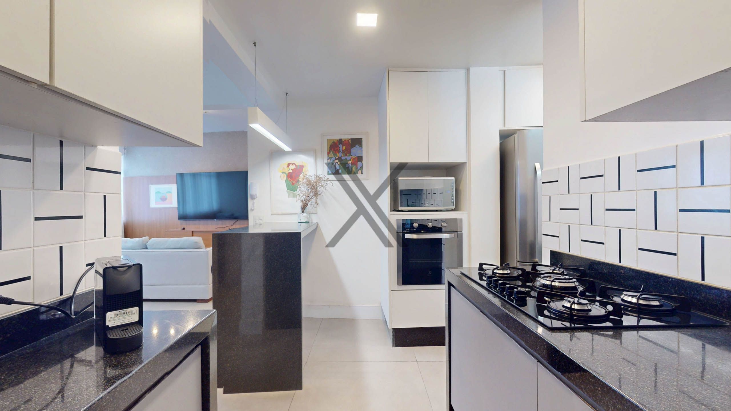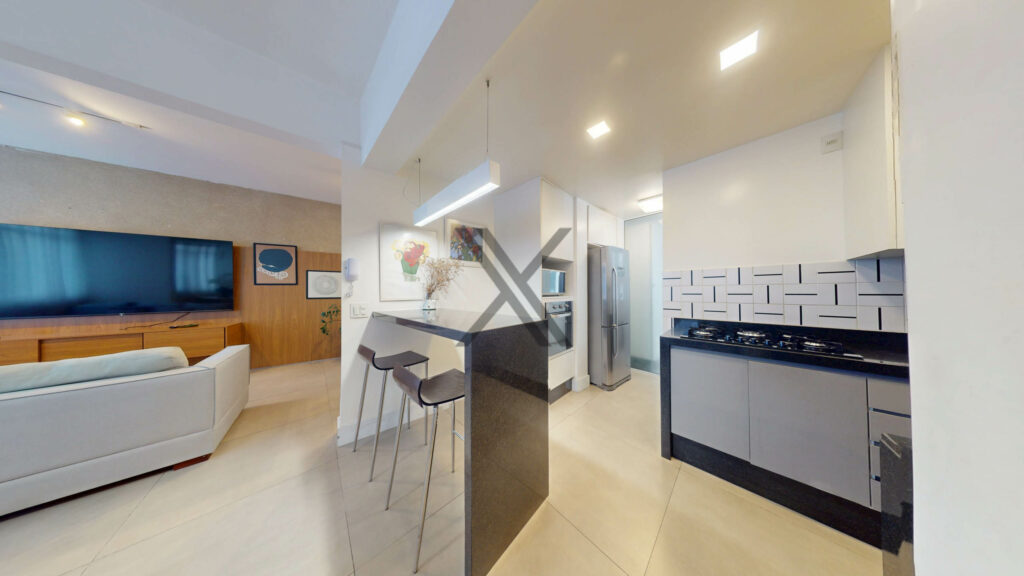 Na área social, temos uma excelente sala em 2 ambientes, sendo sala de estar e sala de jantar, amplas janelas que trazem bastante luz natural e um lavabo de apoio. A cozinha, em conceito aberto, está integrada ao ambiente, e conta com armários planejados, bancadas para apoio e organização, além de forno, cooktop e uma linda bancada para pequenas refeições.