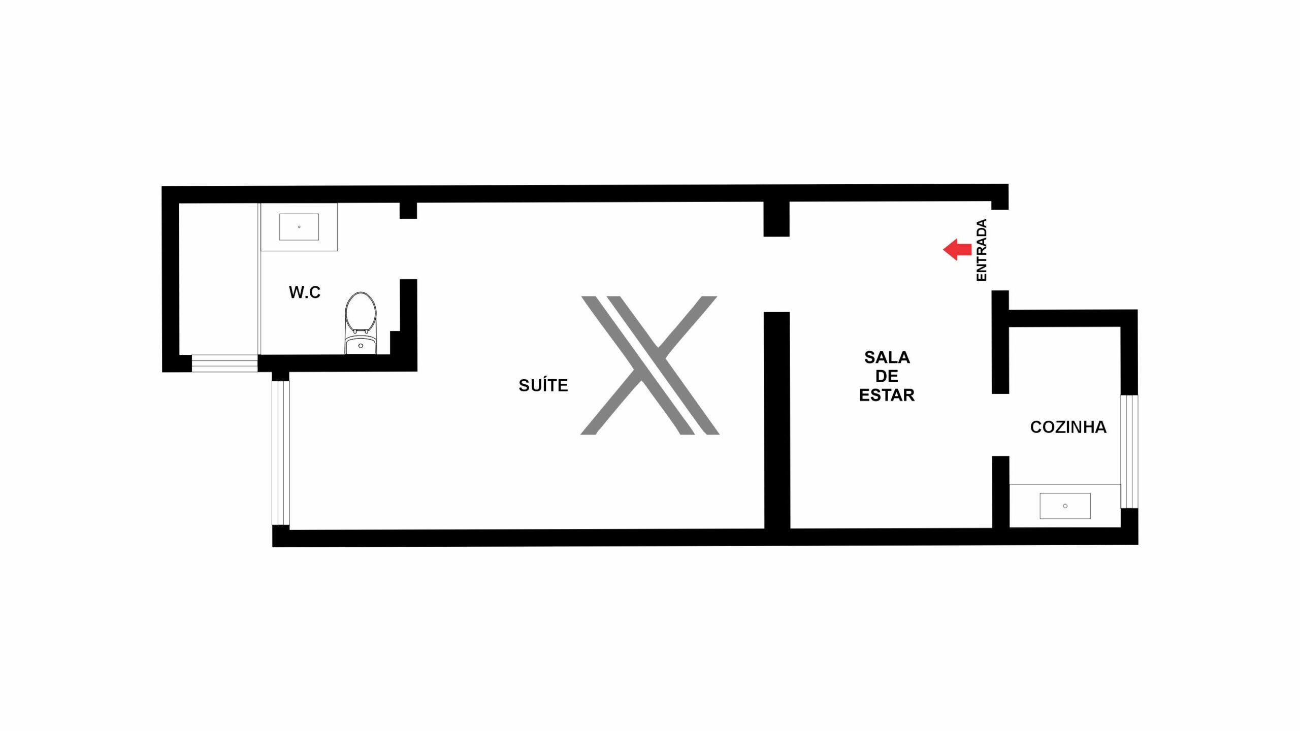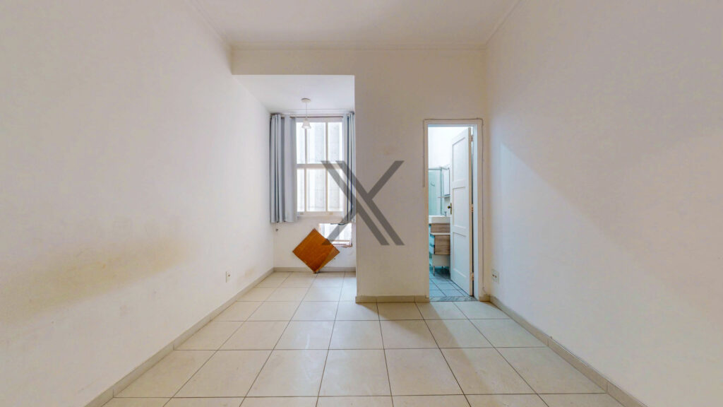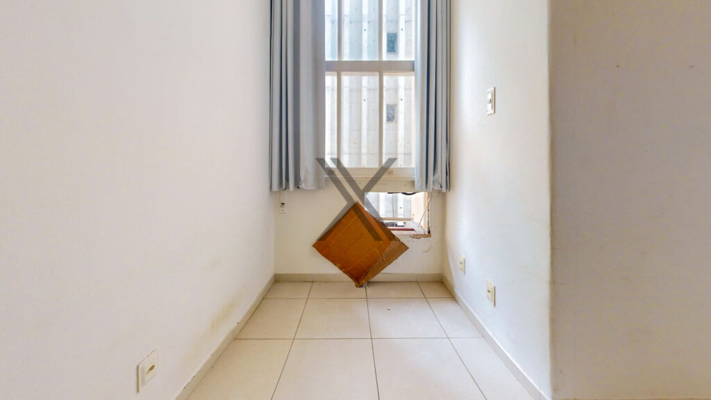 A área privativa conta com 1 quarto confortável e de bom tamanho, além de um bom banheiro social. Esses ambientes podem também ser anexados à área social, transformando o imóvel em um moderno studio.