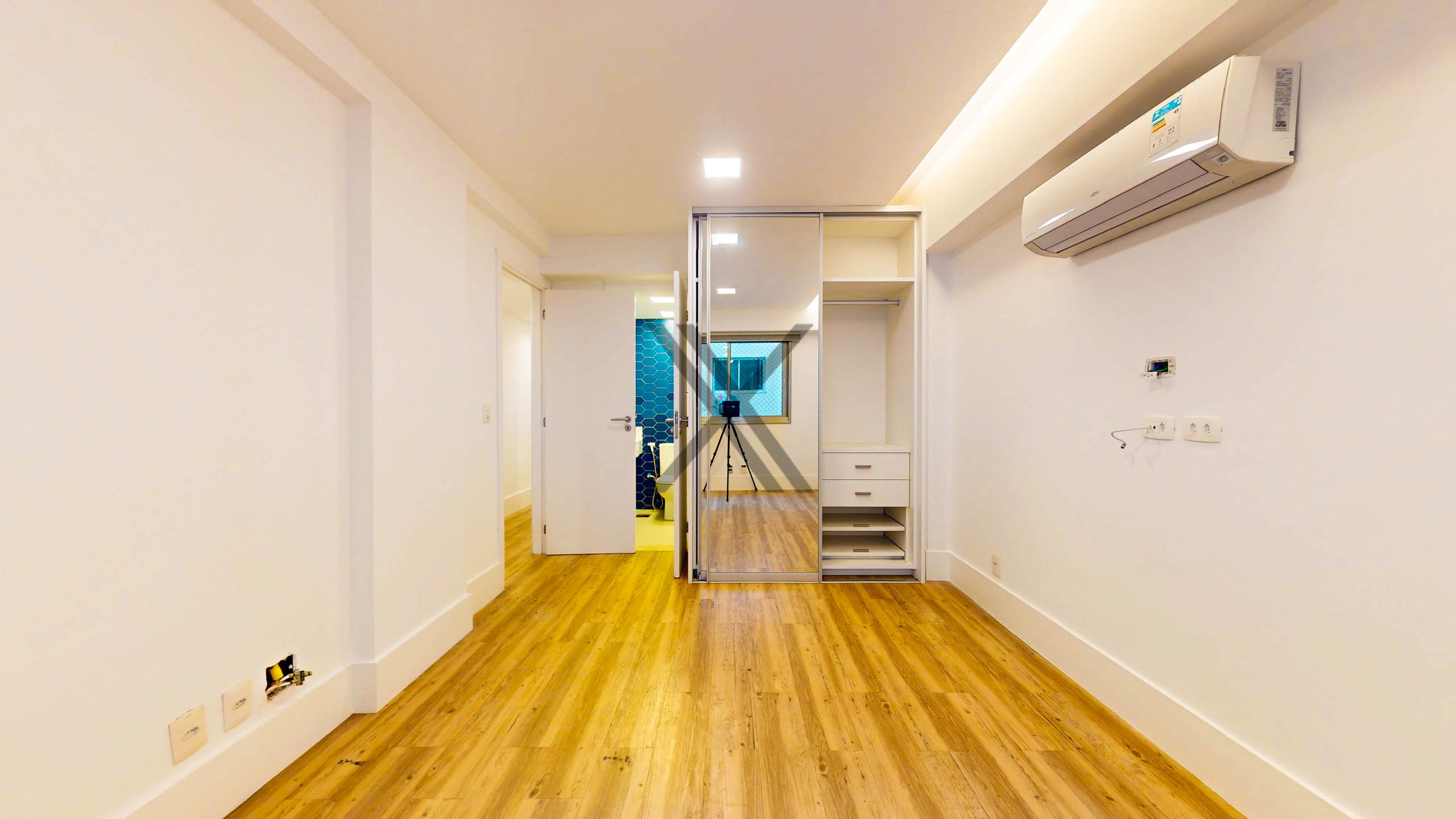 A área privativa apresenta 3 suítes, todas com bom tamanho, armários e splits instalados. Uma das suítes possui acesso para a varanda principal.