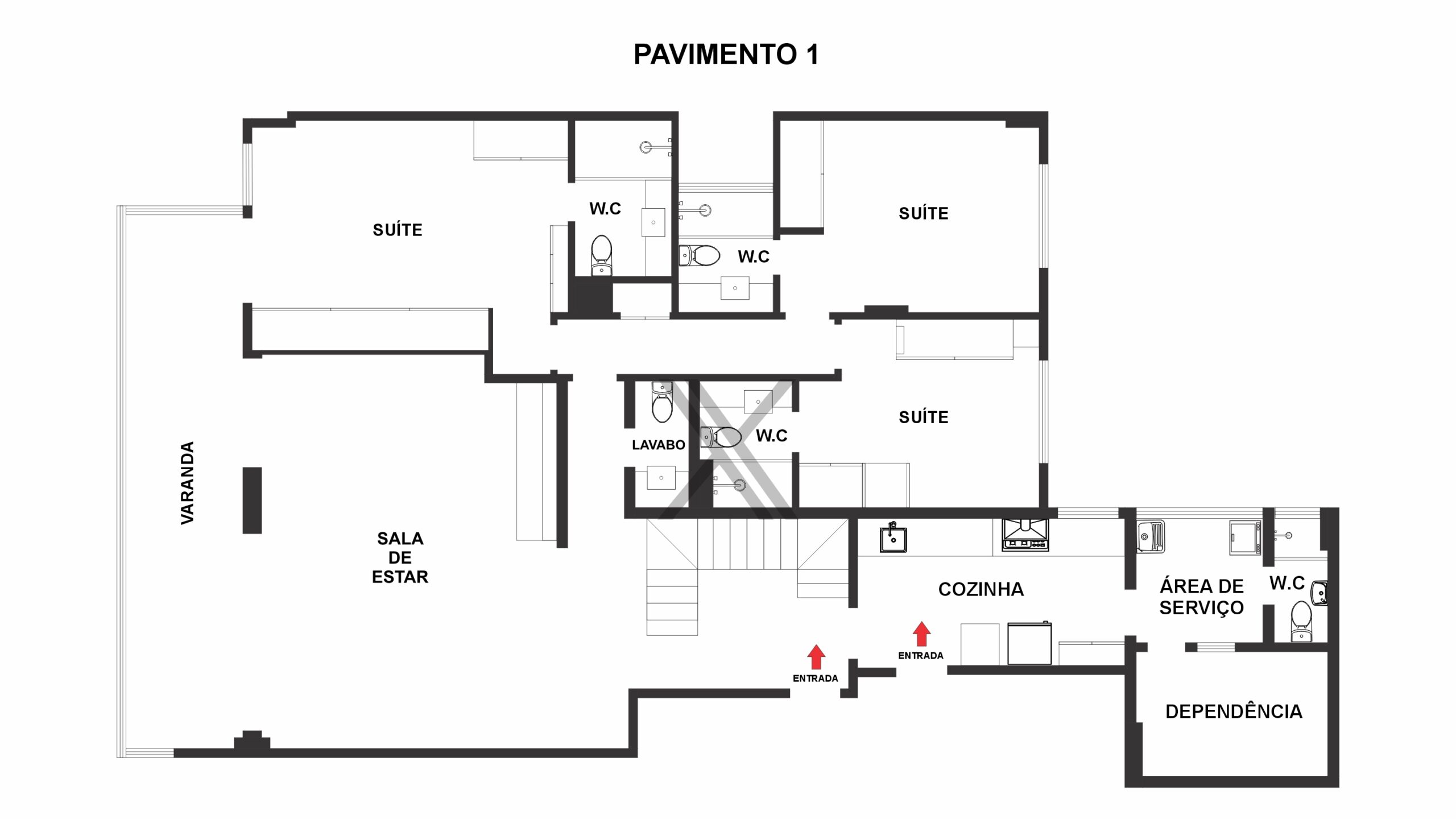 No primeiro pavimento, temos uma excelente área social que comporta até 3 ambientes com muito conforto. A varanda foi integrada ao ambiente, proporcionando mais espaço. Além disso, a área conta com lavabo de apoio às visitas, excelente iluminação natural e muitas possibilidades de layout.