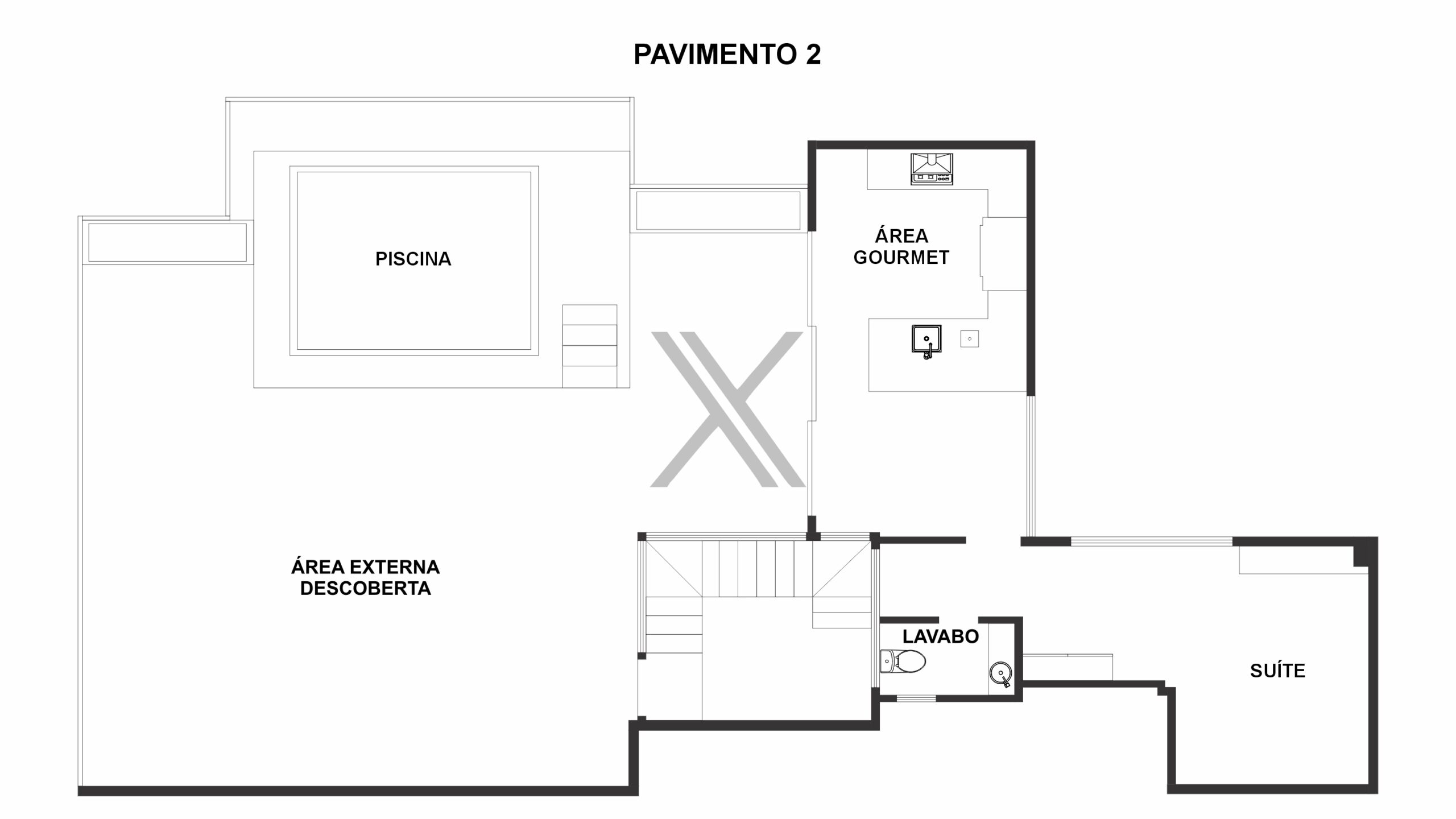 No segundo pavimento temos uma extensa área de lazer, com piscina, espaço gourmet climatizado, lavabo e sala de convívio/ TV que pode ser utilizada como quarto de visitas.