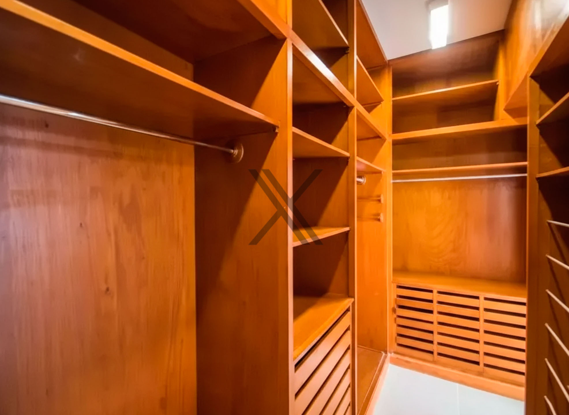 A área privativa apresenta 4 quartos, sendo 2 suítes, todos com metragens generosas e ótima iluminação natural para os ambientes. A suíte master é um show à parte, pois conta com walk-in closet e um banheiro amplo.