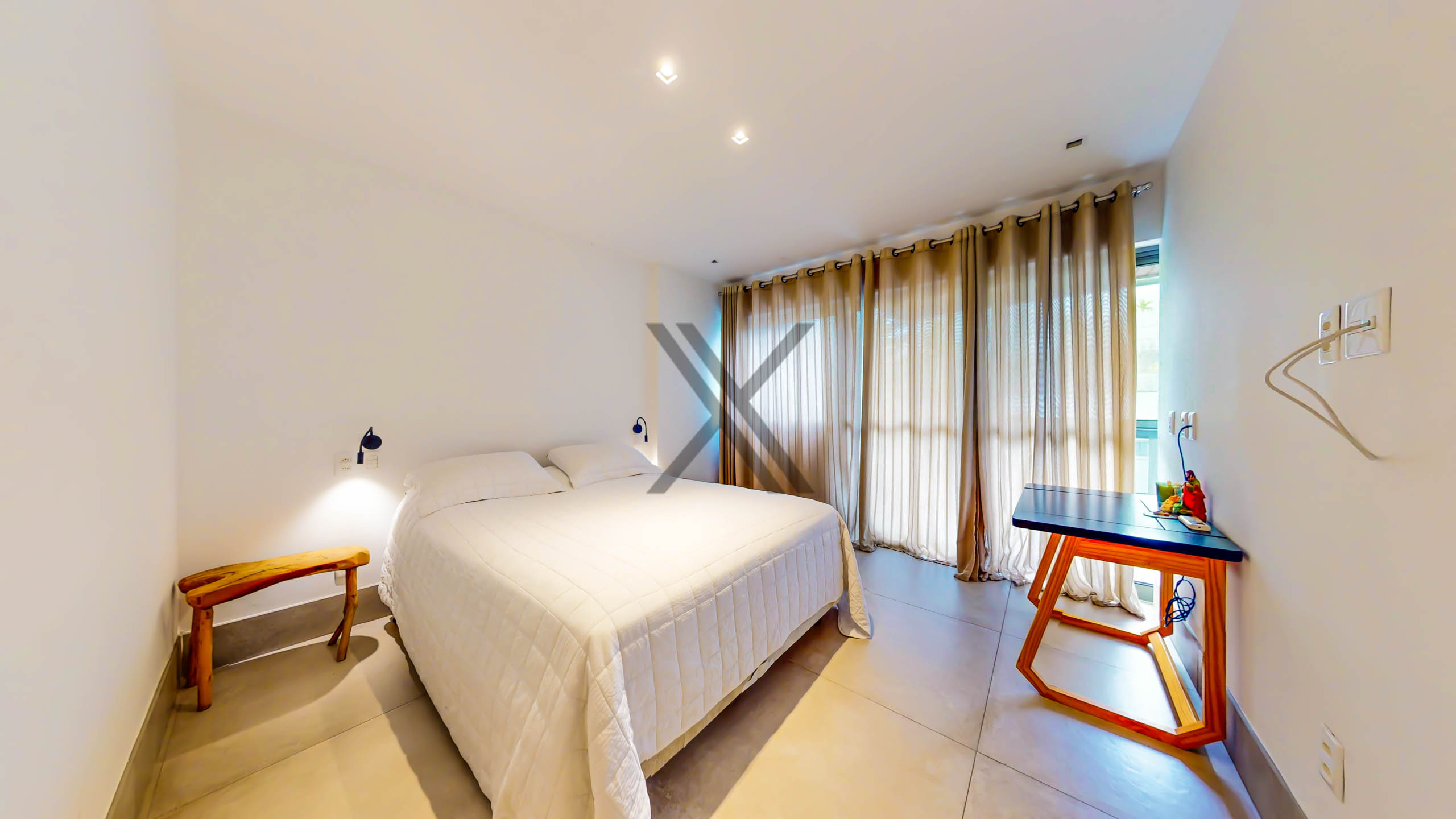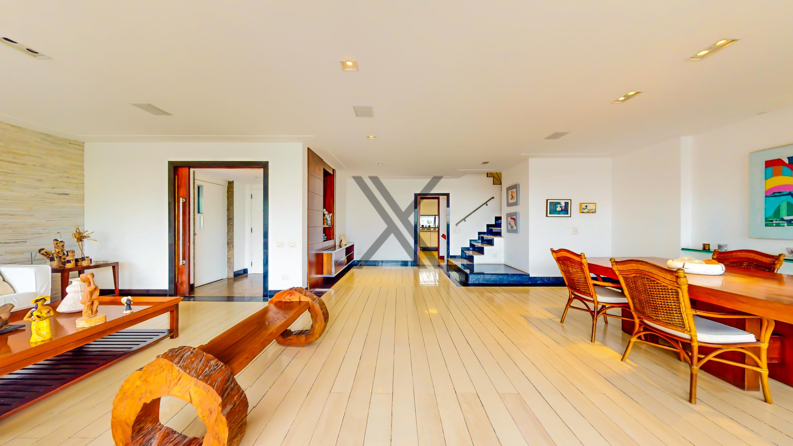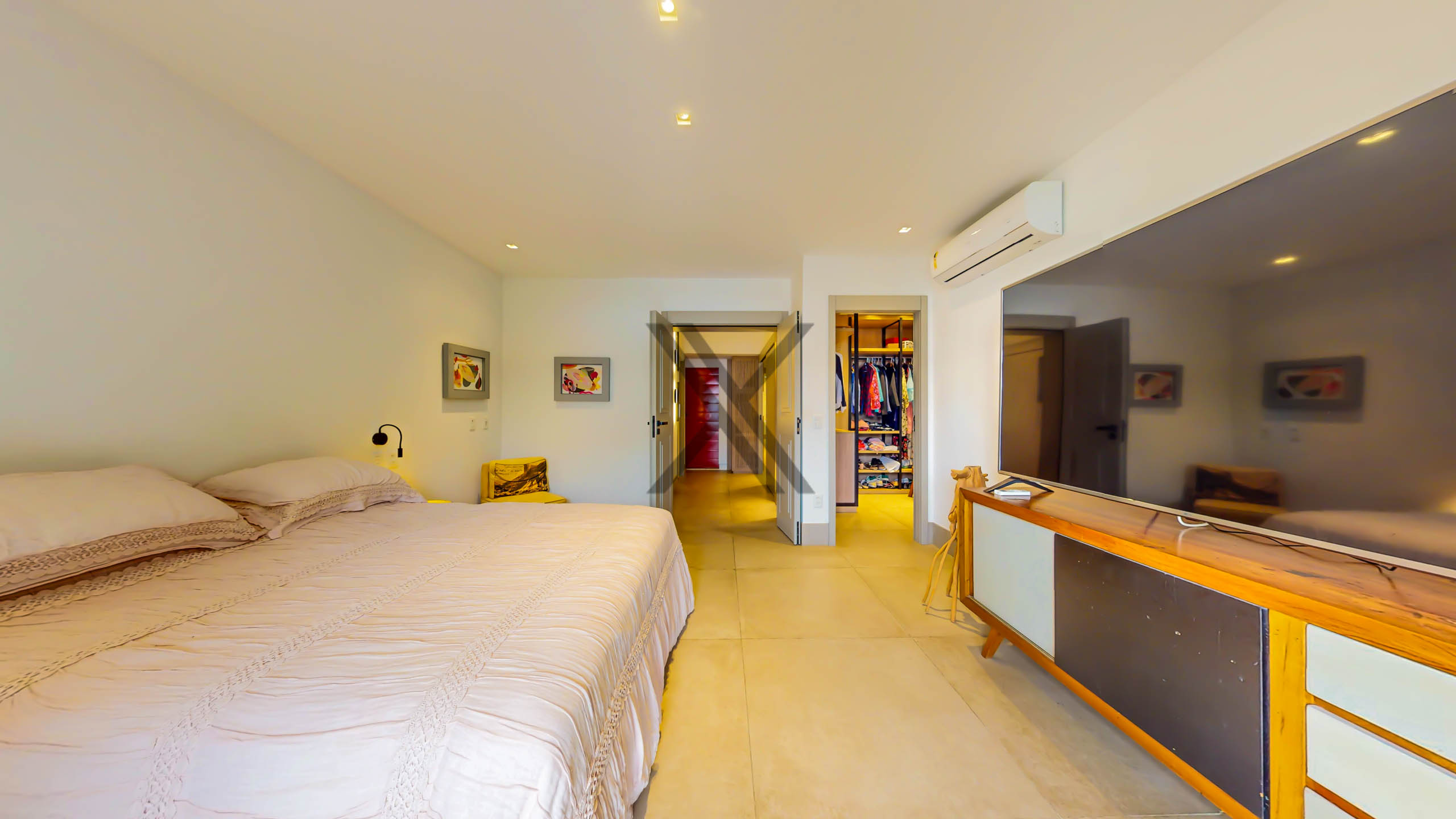 Ao descermos as escadas, nos deparamos com a área privativa, que se encontra no primeiro pavimento. Ela está totalmente reformada e apresenta 4 suítes de ótimos tamanhos, todas com ar-condicionado split instalados, sendo 2 delas com acesso à varanda privativa e excelente walk-in closet.