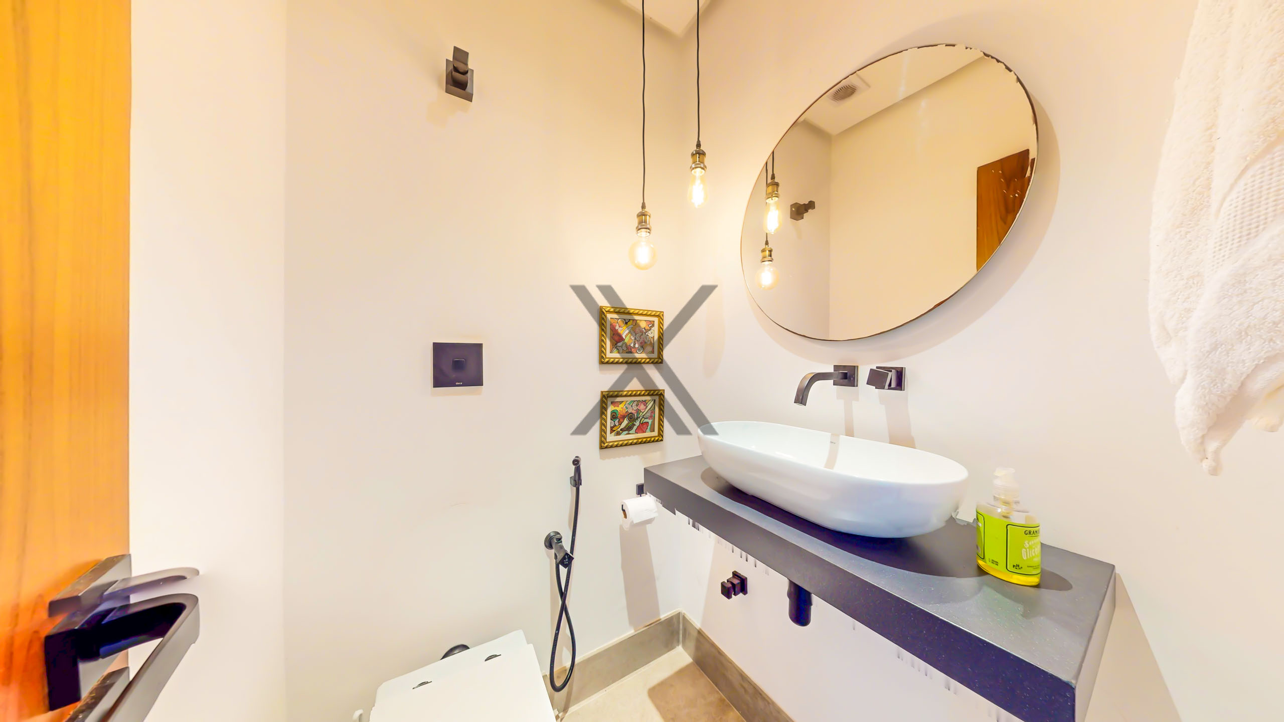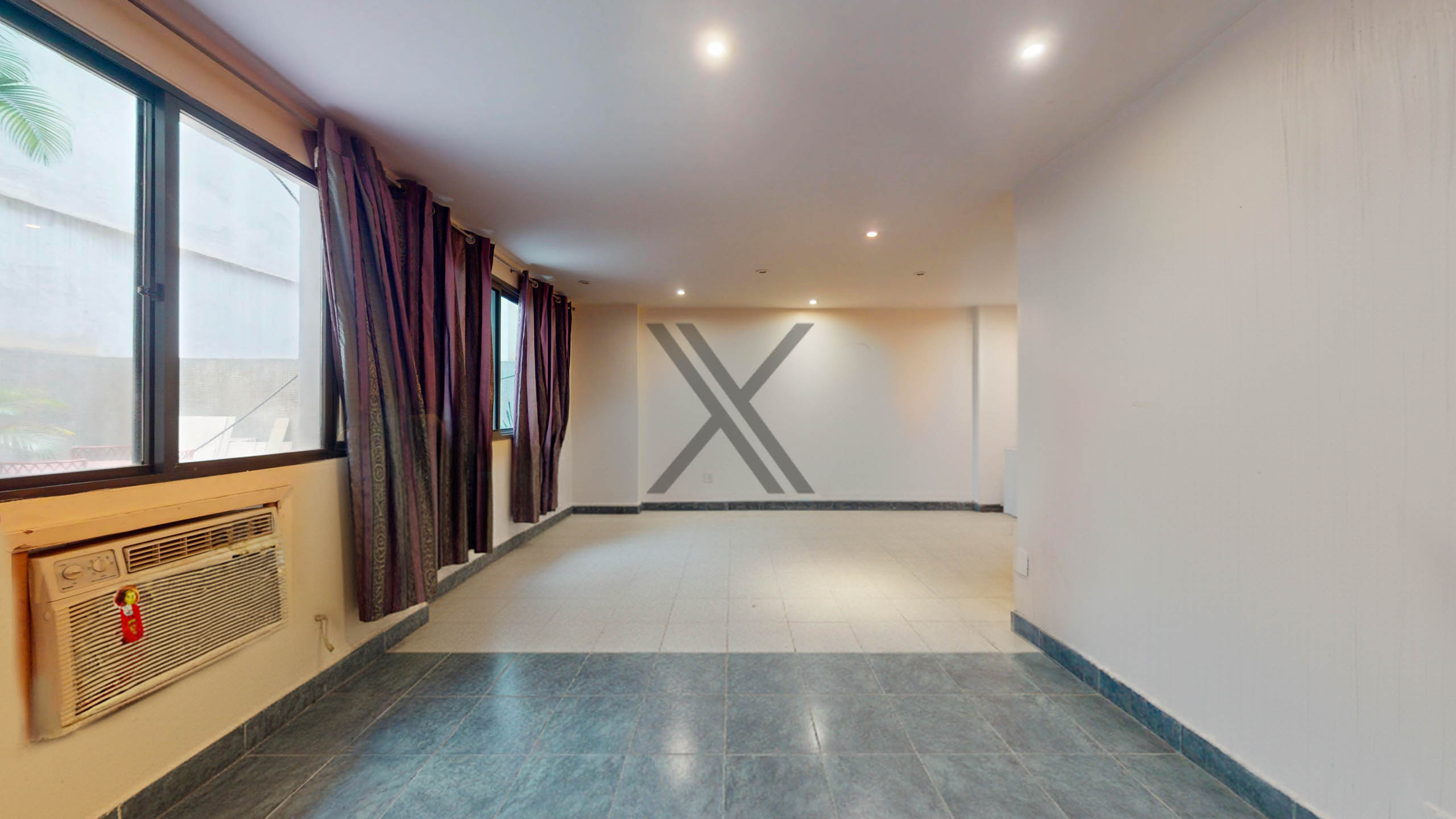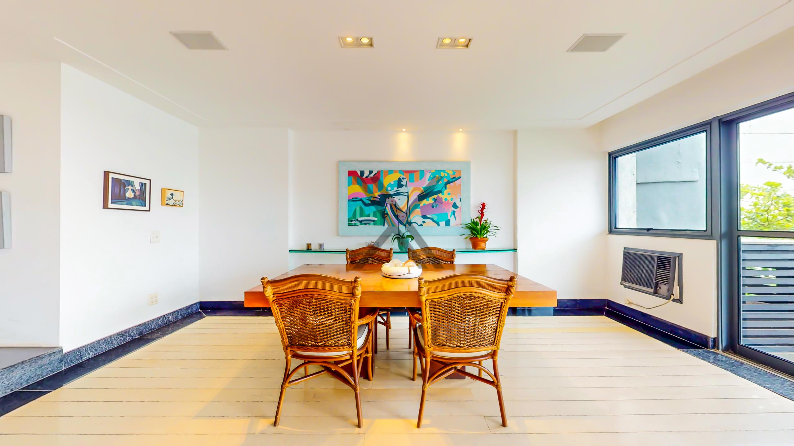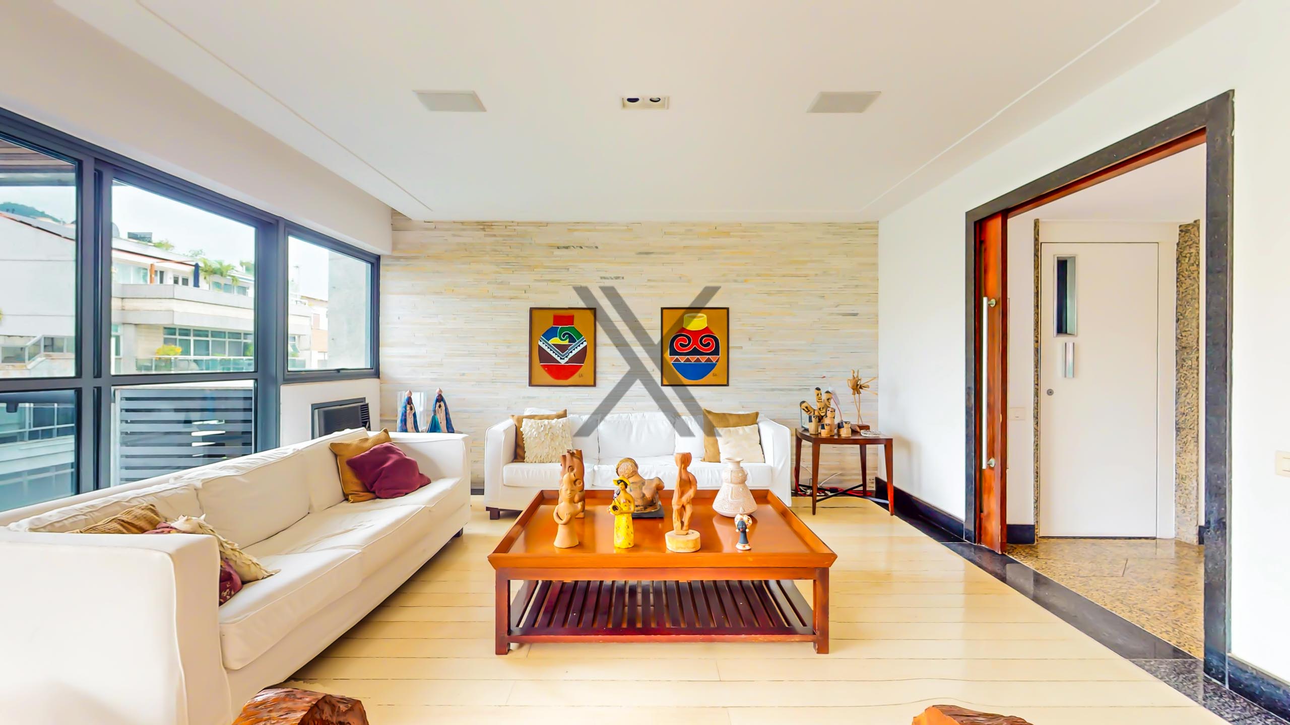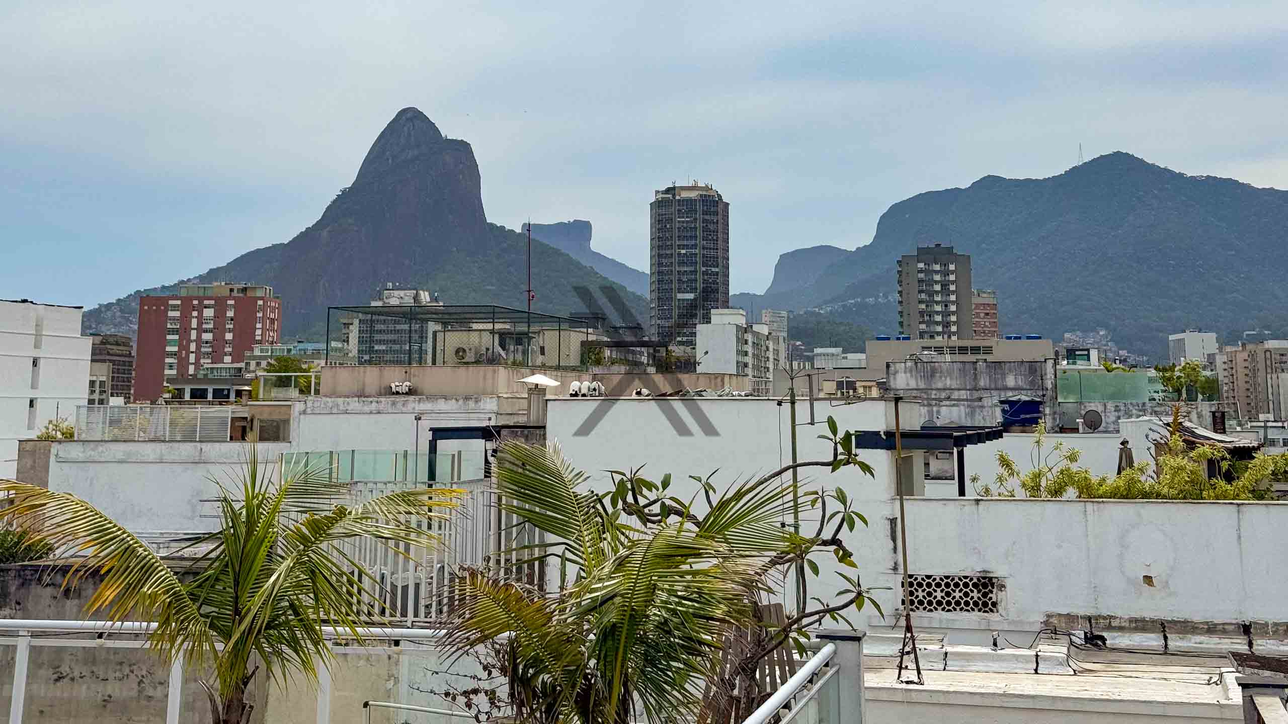 O acesso principal do imóvel se dá pelo segundo pavimento. Nele temos sala divida em 2 grandes ambientes, extensa varanda com vista para o Cristo, excelente iluminação natural e muitas possibilidades de layout. Um lavabo de apoio às visitas complementa o ambiente.