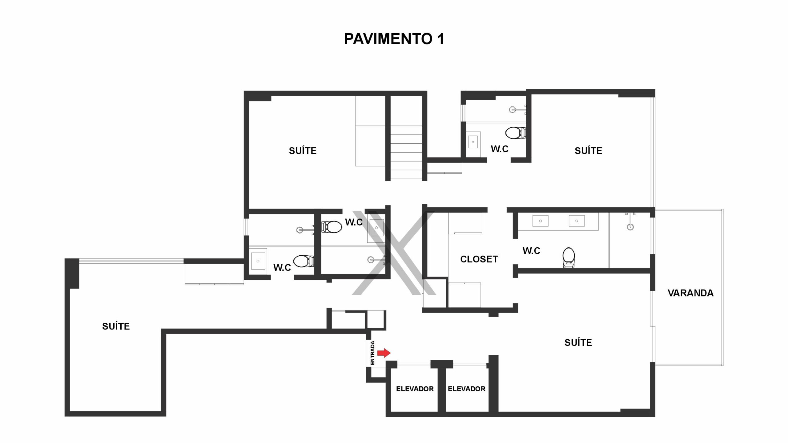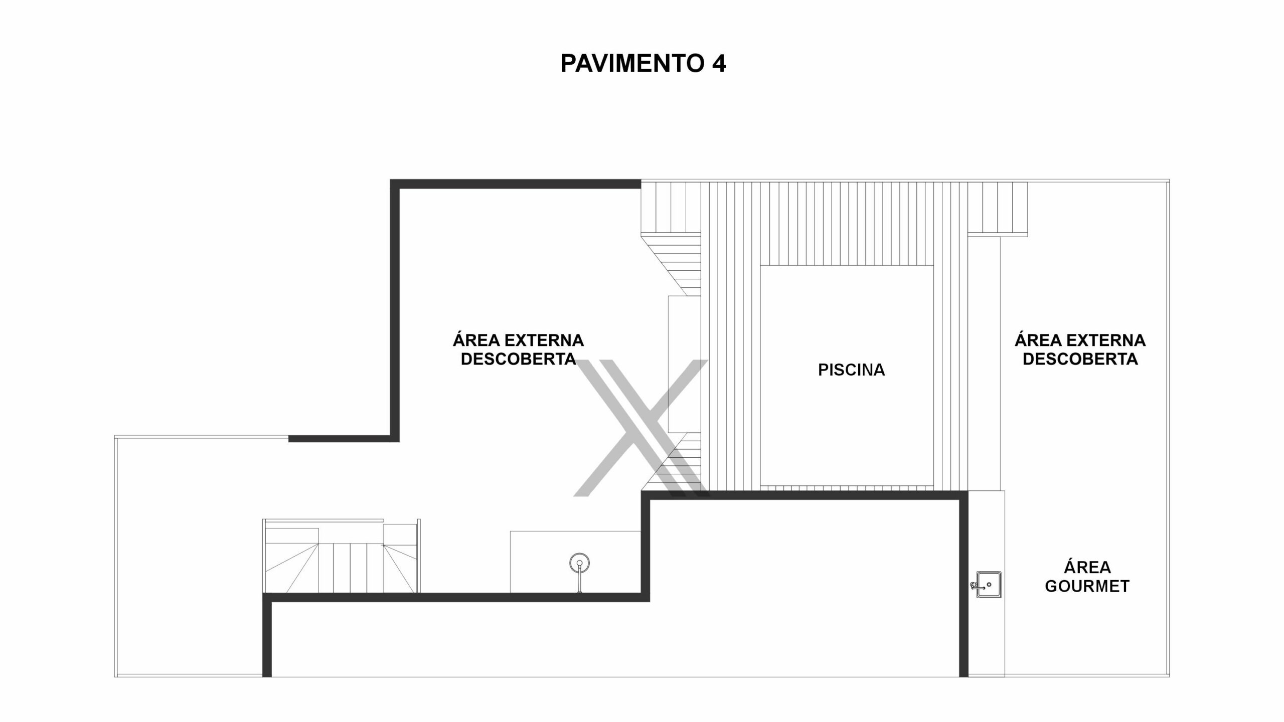 Além dos 4 pavimentos, o imóvel também apresenta um apartamento de cerca de 90 m² de uso exclusivo, onde seria o PUC (pavimento de uso comum).