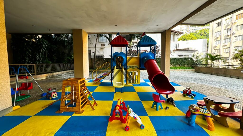 Na área de lazer do prédio, é possível usufruir de salão de festas, jogos e playground com brinquedos infantis. O condomínio também oferece portaria 24 horas com controle de acessos e monitoramento por câmeras.