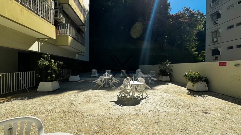 O apartamento fica em um dos melhores prédios da Lagoa, no charmoso trecho dos principais quiosques e restaurantes, como o Mandarim e o Clássico, também ao lado do Parque da Catacumba.